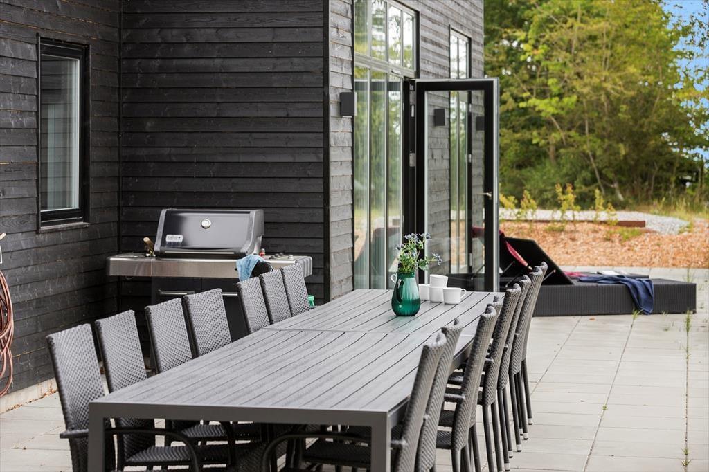 Når I holder ferie i dette sommerhus, får I de perfekte rammer til at nyde hinandens selskab, uanset om det er under den klare sommerhimmel eller på en kølig efterårsaften. Fliseterrassen er et sted, hvor alle kan finde deres eget hjørne – måske en solplet til en stille stund med en bog eller en hyggelig plads i læ, når vejret er lidt køligere. Her kan I slappe af i liggestolene, mens den friske luft fylder lungerne, og naturen omkring huset inviterer til ro og samvær.
