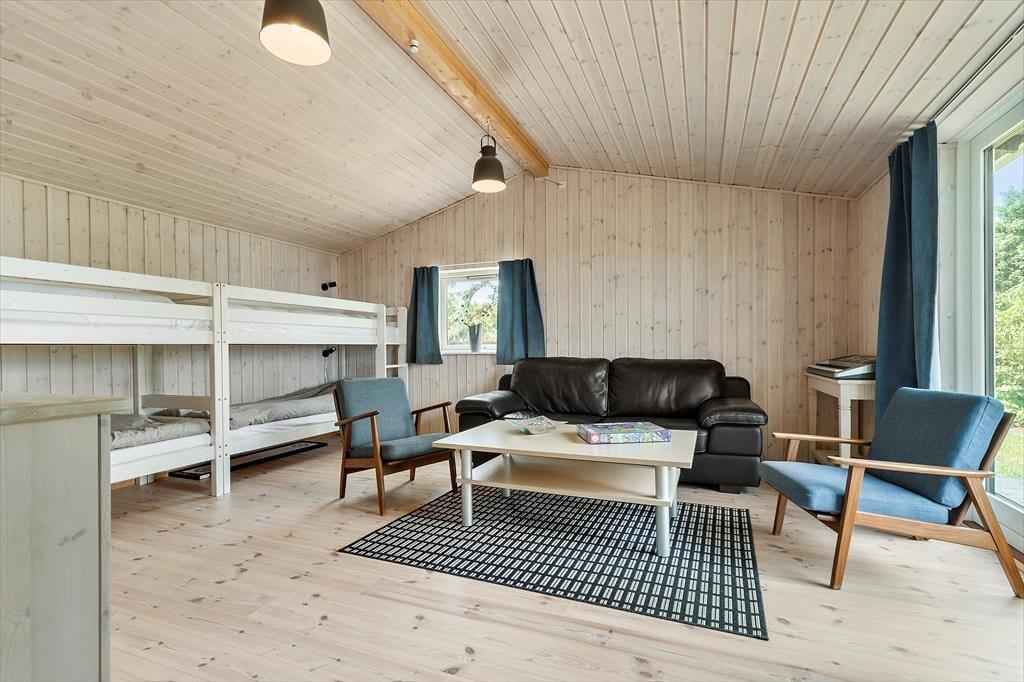 Dette velholdte sommerhus ligger smukt og fredfyldt og I vil straks mærke feriestemningen brede sig. Huset er løbende blevet sat i stand og senest udvidet med en flot tilbygning i 2022, så det nu står som det perfekte ramme om en skøn ferie med familie eller venner. Når I træder ind i huset, bliver I mødt af den store, lyse og velindrettede stue. Her kan I læne jer mageligt tilbage i de komfortable slængemøbler, tænde for tv’et og følge med i de store sportsbegivenheder, som du ikke vil gå glip af. Eller måske tage et spil med børnene eller blot hygge dig med en god bog. Fra det dejlige køkken kan du gøre kartofter og jordbær i stand, alt imens du snakker med den øvrige familie over halvmuren til stuen eller gæsterne i solgården. Måske familien spiller et sjovt spil ved spisebordet, mens du roligt forbereder maden og hyggen breder sig om jer alle. I sommerhusets badeværelse finder I en lækker 2-personers spa, hvor I rigtig kan nyde livet i de varme bobler. Badeværelset har også vaskemaskine og tørretumbler. Her er plads til i alt 8 personer, fordelt på tre gode soveværelser. Der er to soveværelser med behagelige dobbeltsenge og et kæmpe værelse med to solide køjesenge – perfekt til børnene eller dem, der elsker en hyggelig soveplads. Og bare rolig, køjesengene er ekstra lange (210 cm), så der er god plads til alle, store som små.