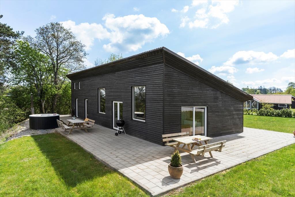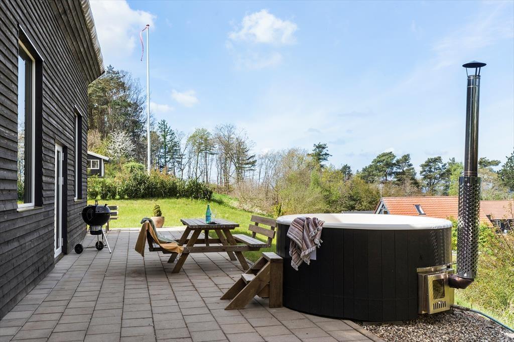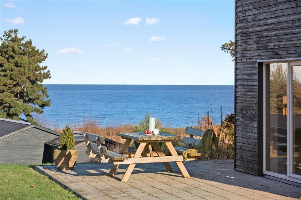 Panoramaterrassen er noget helt særligt – her kan I samles om grillen, nyde dagens måltider i solen eller lade jer synke ned i vildmarksbadet, mens I beundrer den betagende udsigt over havet. Græsplænen foran huset indbyder til boldspil og sjov, eller måske blot en rolig stund med en god bog i liggestolen.