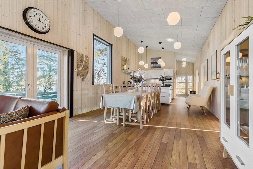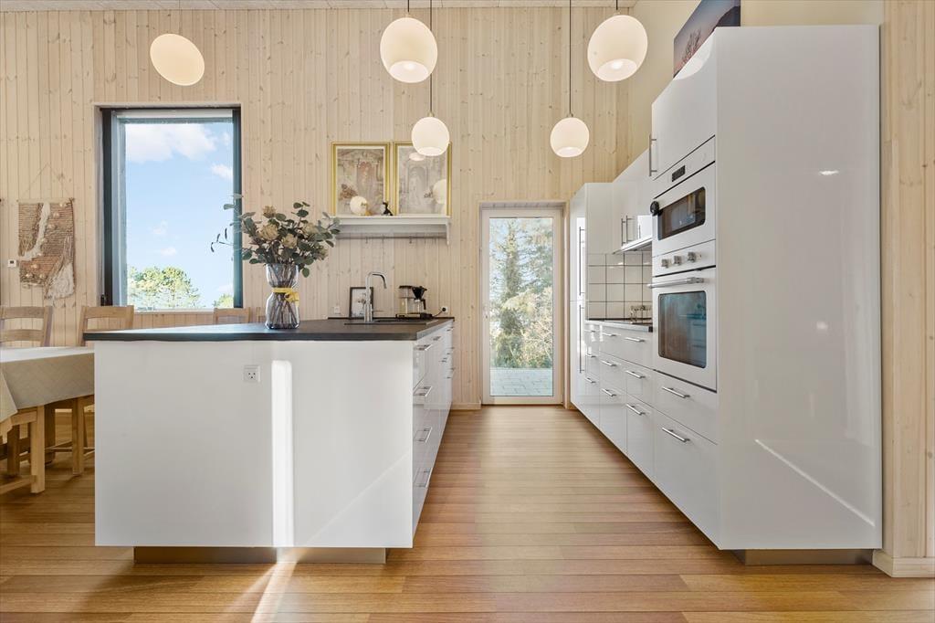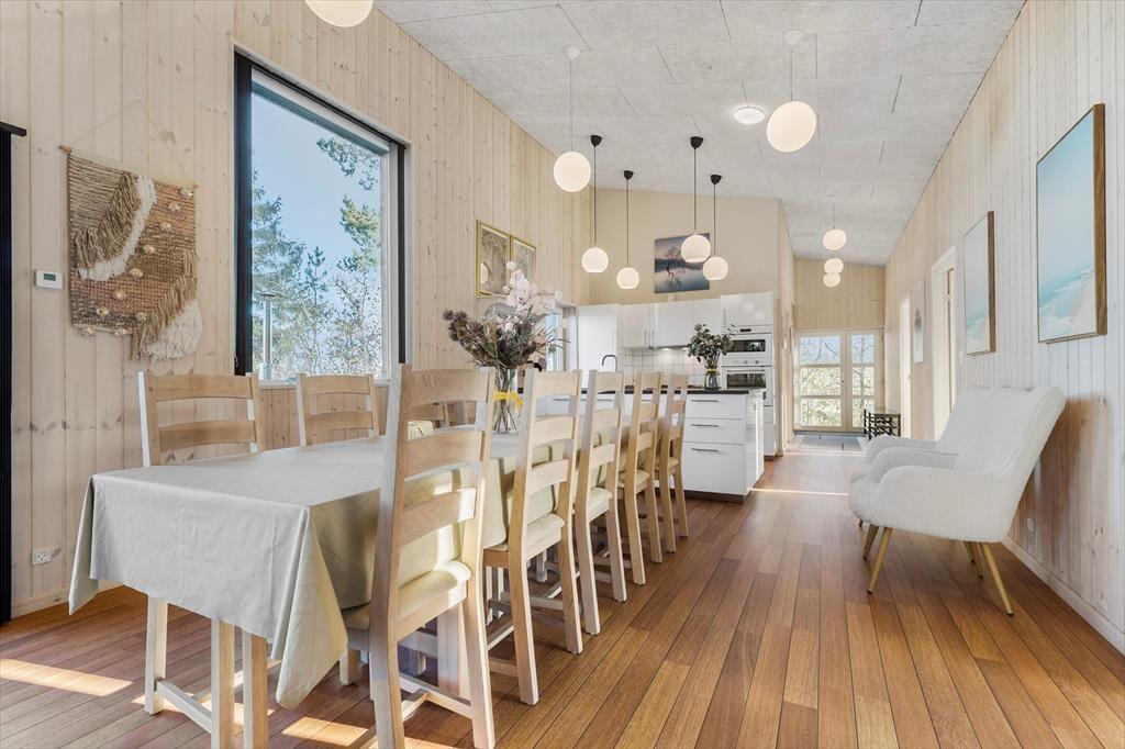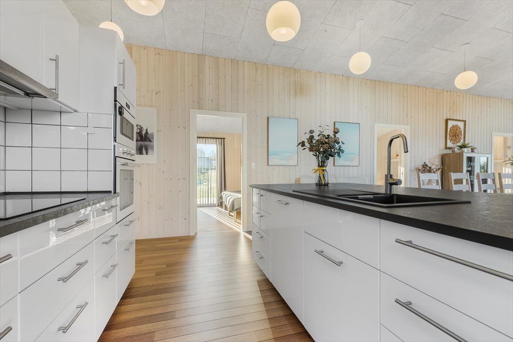Træd ind i dette moderne og stilfulde ferieparadis fra 2022, hvor feriefølelsen tager imod dig allerede ved døren. Her forenes luksus og natur med en spektakulær havudsigt, der strækker sig fra stuen, køkkenet og hele vejen ud på den fantastiske panoramaterrasse. Kun 200 meter væk venter den børnevenlige badestrand, hvor I kan dyppe tæerne i det friske vand eller nyde en lang gåtur i sandet.