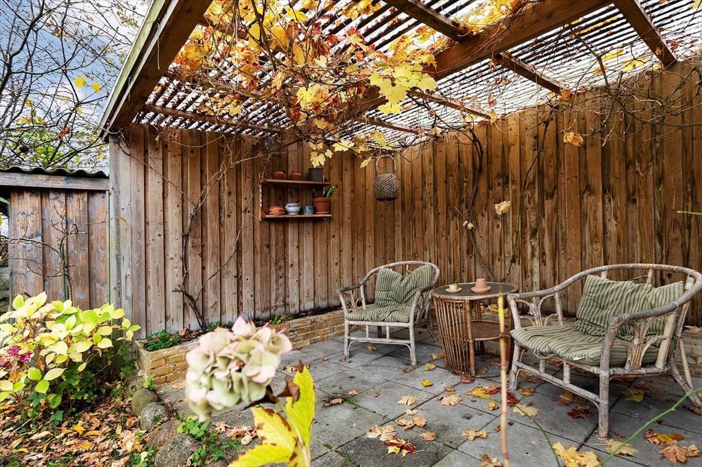 Når solen står højt på himlen, er der også skønne kroge til solbadning, afslapning og spisning. Den store græsplæne indbyder til leg, og hele haven er indhegnet, så både børn og familiens firbenede venner trygt kan løbe frit omkring.