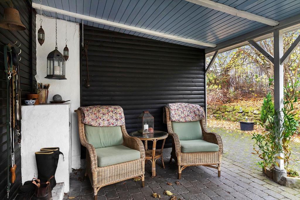 Udenfor folder det franske ferieliv sig for alvor ud – i smuk harmoni med de danske årstider. Her finder du godt 100 kvm terrasse, hvoraf 60 kvm er overdækket og forvandlet til intet mindre end fire oaser af hygge. To steder kan du slå dig ned med et glas vin og nyde aftenudsigten over havet, mens et tredje område ligger lige ved køkkenet – et skønt rum til lange grillaftener ved langbordet. Det fjerde hyggested møder dig allerede ved indgangen, hvor to kurvestole og duften af figentræ byder velkommen med sydlandsk stemning og feriefølelse fra første øjeblik.