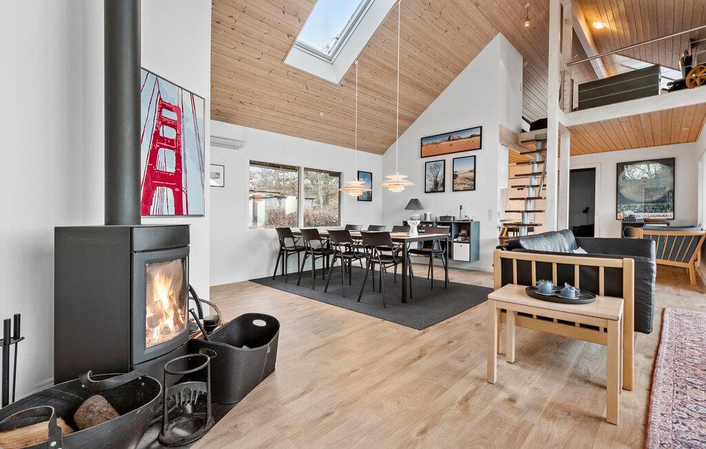 Velkommen til dette veludstyrede sommerhus med førsteklasses beliggenhed. Føl jer godt tilpas på sofaen i jeres smagfuldt møblerede stue og nyd havudsigten uden at skulle give afkald på privatlivets fred. Tilbring stilfulde aftener foran den knitrende pejs og fejr jeres måltider ved det behageligt oplyste spisebord.