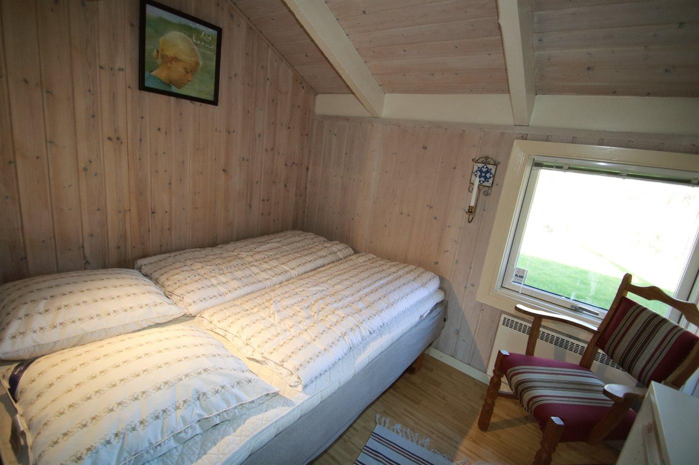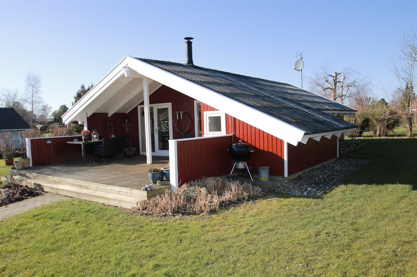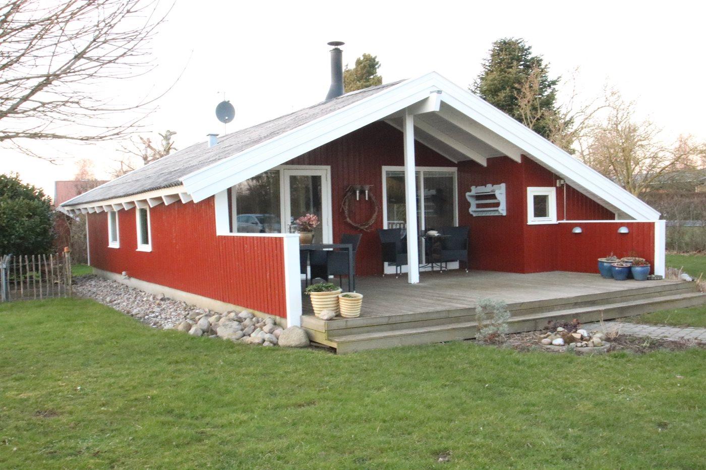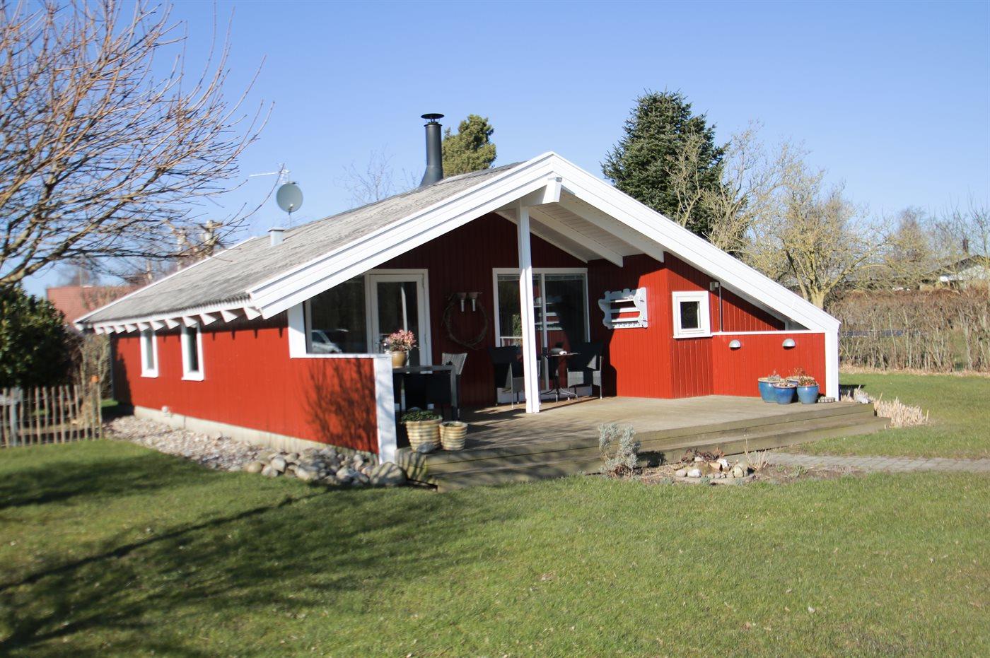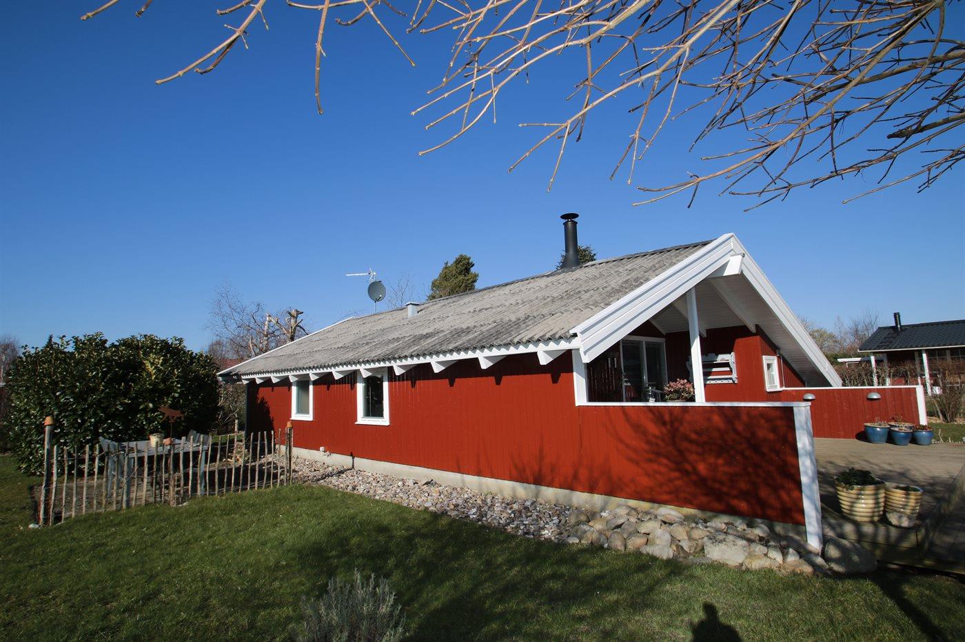 Virkelig dejligt og særdeles velholdt sommerhus i træ, bygget i 1979 og løbende renoveret, beliggende på en natur-/havegrund tæt på børnevenlig sandstrand. Til huset hører såvel åben som overdækket terrasse med havemøbler. Indvendig er vægge og lofter beklædt med lyst træ. Lyse trægulve, dog klinkegulv på badeværelse og i saunaen. Skønt badeværelse med bruseniche og vaskemaskine. Separat sauna. Hyggelig opholdsstue med brændeovn, TV med parabol (digital), stereoanlæg med CD-afspiller og DVD-afspiller. Stuen er via skøn spiseafdeling kombineret med det lyse køkken som bl.a. er udstyret med opvaskemaskine, mikrobølgeovn, fryser og komfur med keramiske kogeplader. Huset sovepladser fordeler sig på 3 værelser; 2 med dobbeltseng og 1 med enkeltseng. Desuden 1 soveplads i alkoven i opholdsstuen. Af yderligere udstyr kan barneseng og høj barnestol nævnes. Sandkasse og gynge på grunden. Et dejligt sommerhus til en afslappende ferie på alle årstider - i et område med gode aktivitetsmuligheder.