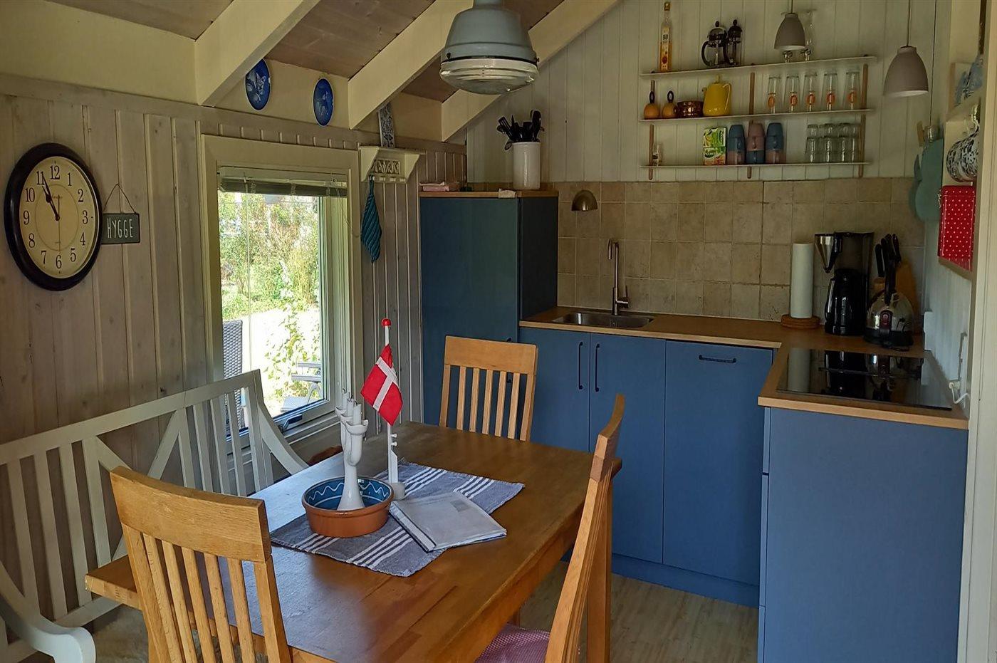 Hyggeligt træsommerhus nær børnevenlig strand