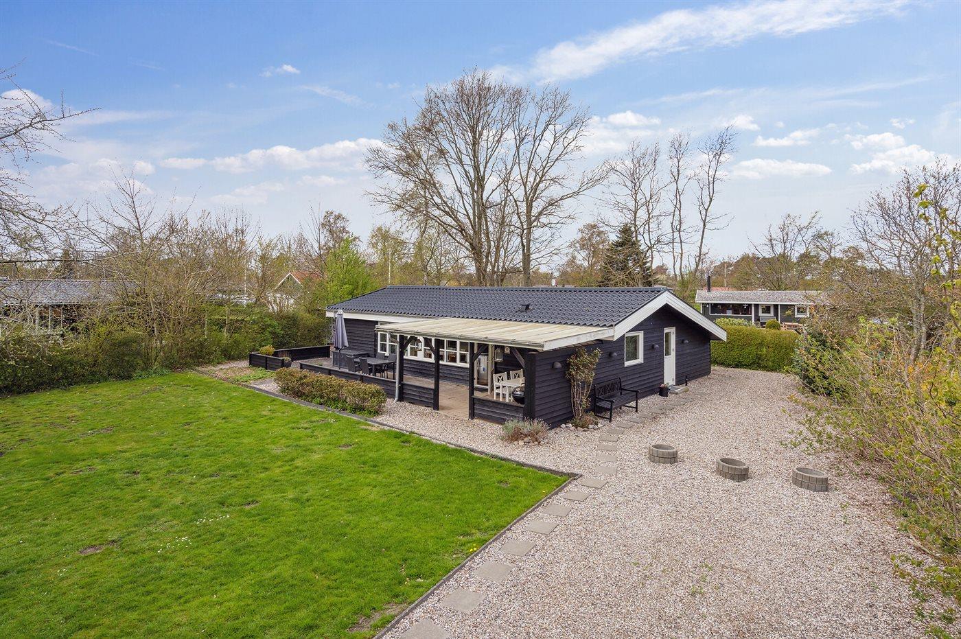 Ferieboligen er beliggende på en 800 m² stor havegrund. Der er 300 m til havet. Nærmeste forretning er beliggende i en afstand af 1000 m. Til ferieboligen hører 20 m² terrasseareal. Desuden er der 10 m² overdækket terrasse. Parkering ved ferieboligen.