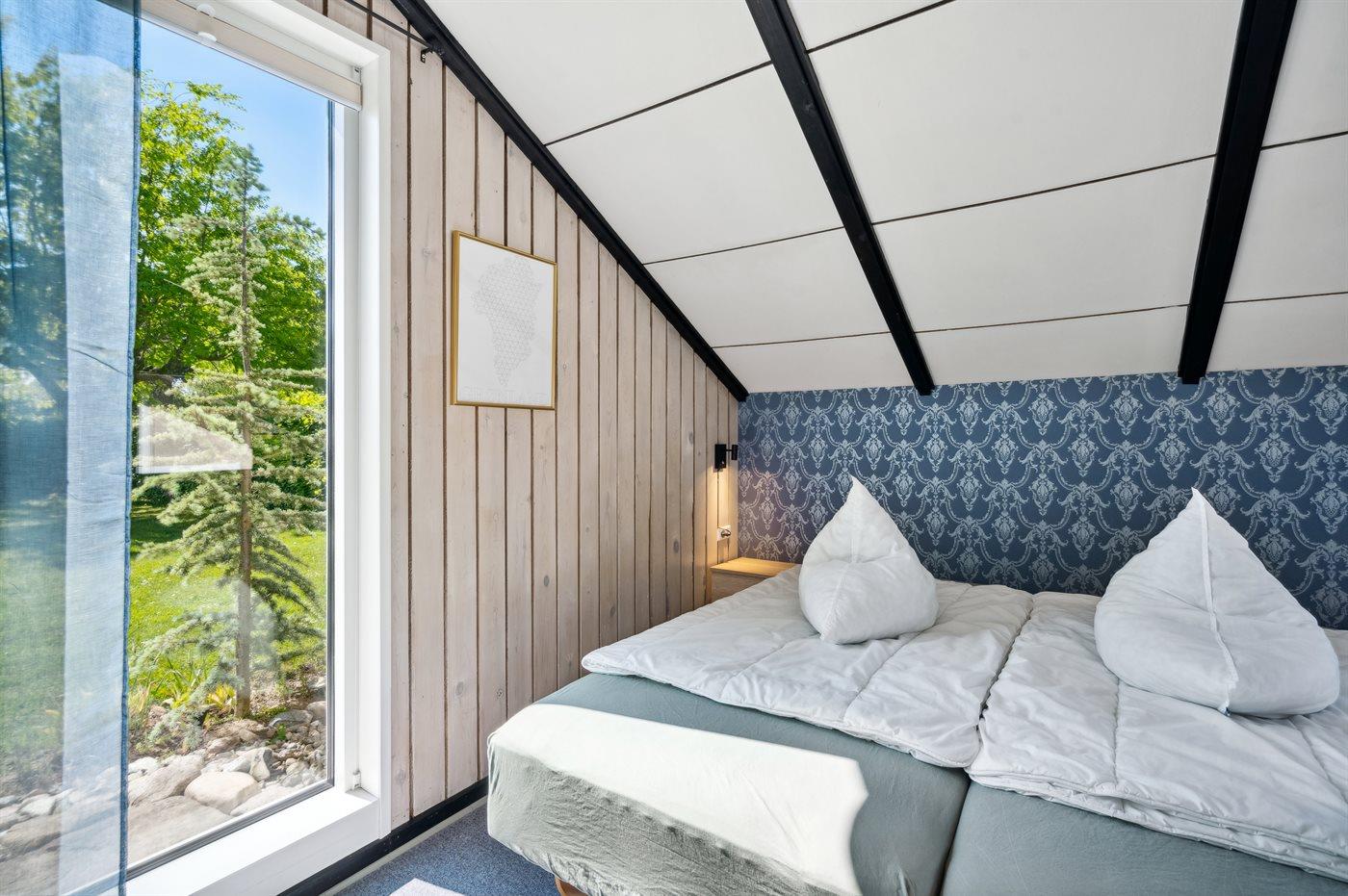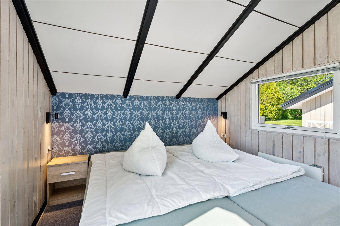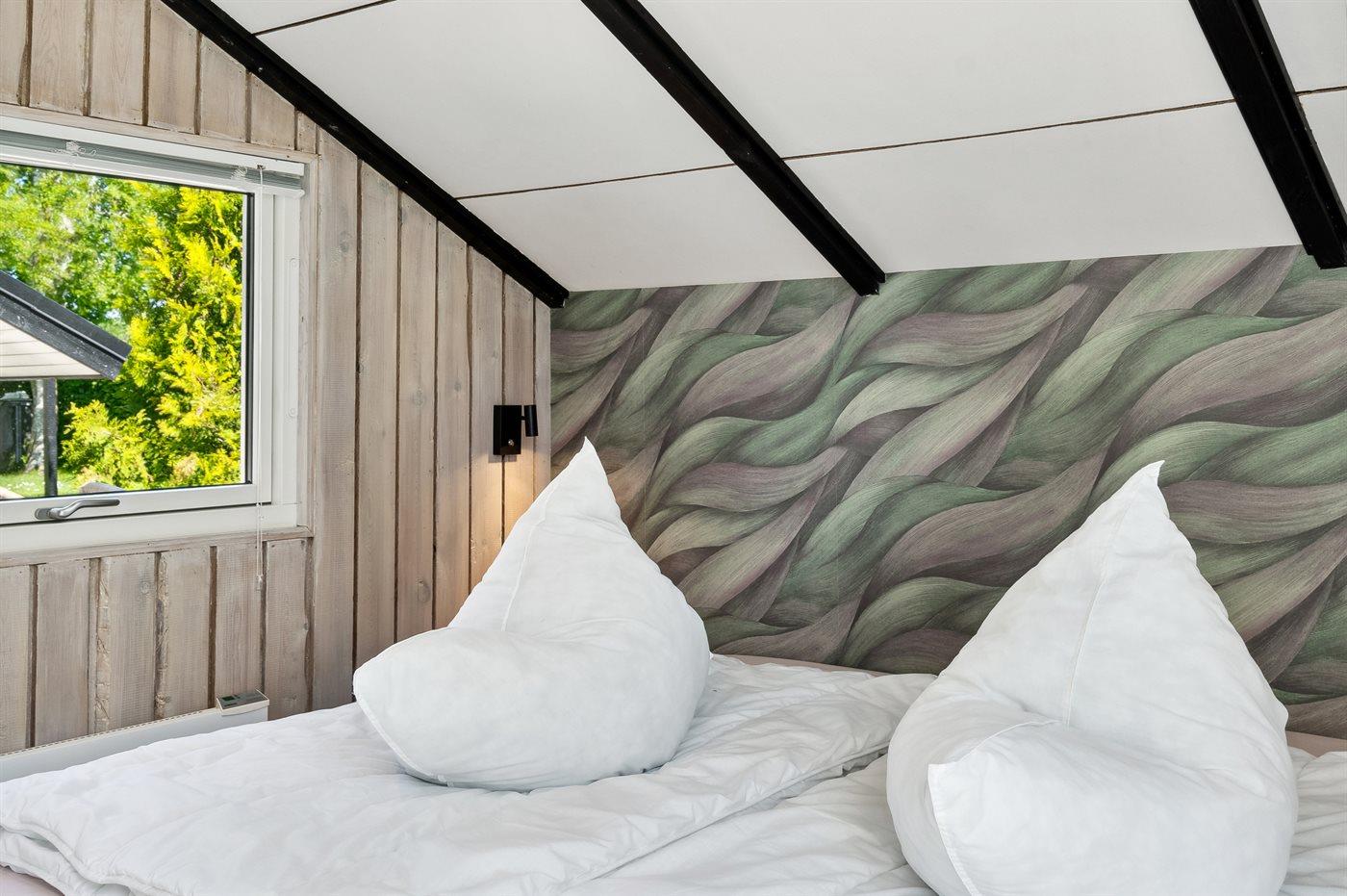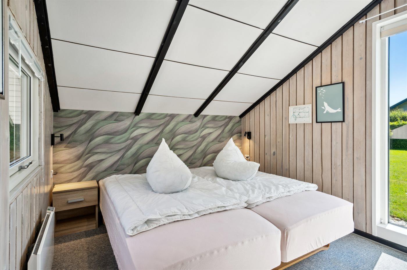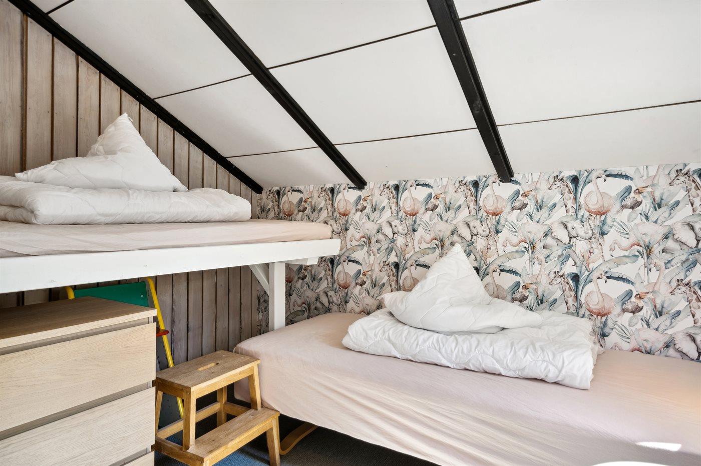 Der er i alt 3 soveværelser. Sovepladserne fordeler sig på: 4 sovepladser i dobbeltsenge. 1 soveplads i enkeltseng.1 soveplads i køjeseng. Derudover er der 1 stk. barneseng.