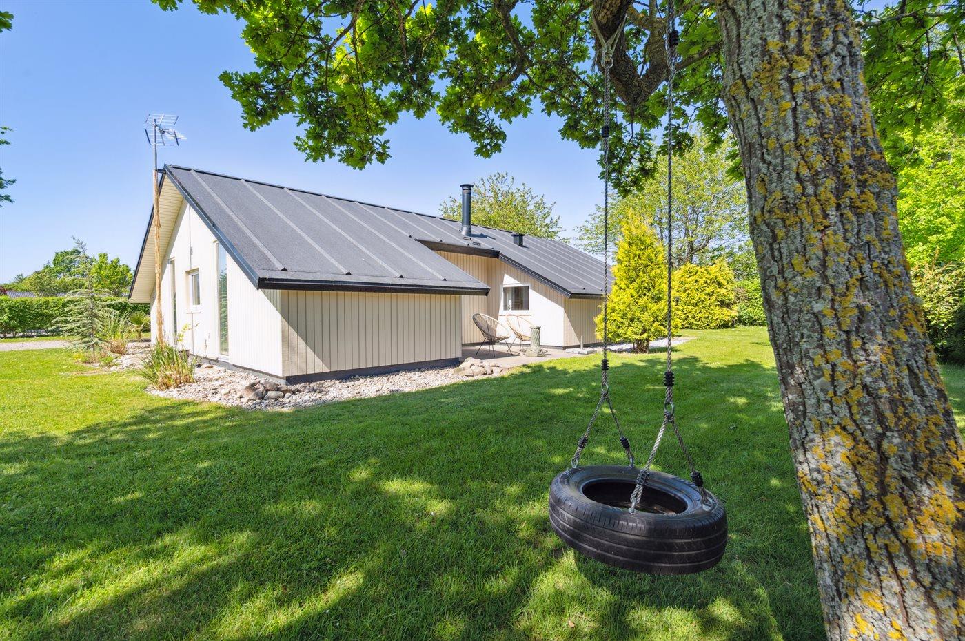 For enden af blind vej ligger dette sommerhus i et roligt sommerhusområde nær børnevenlig badestrand.