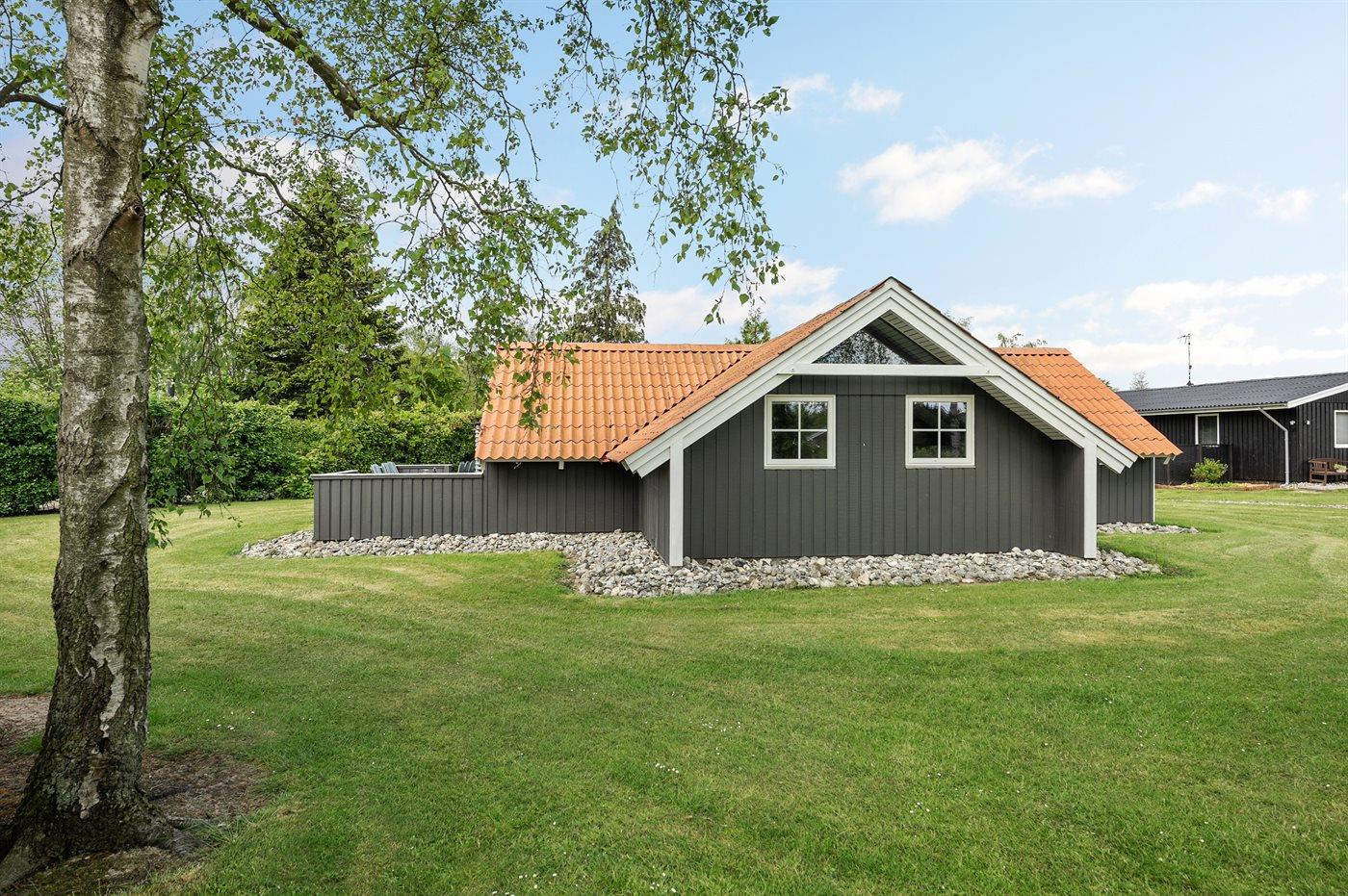 Dette rummelige og velholdte sommerhus ligger tæt ved en god badestrand i Skovmose-området.