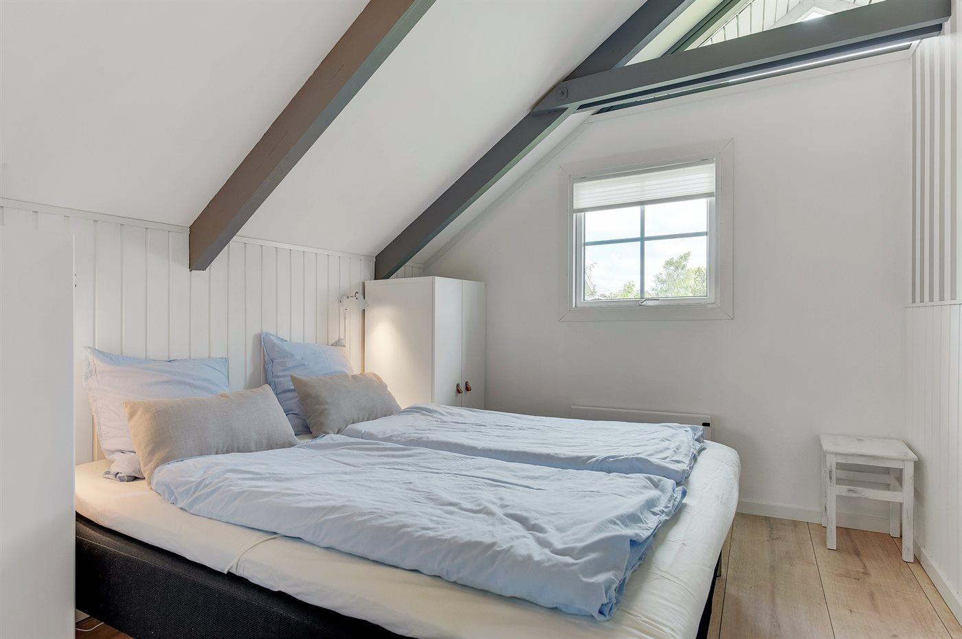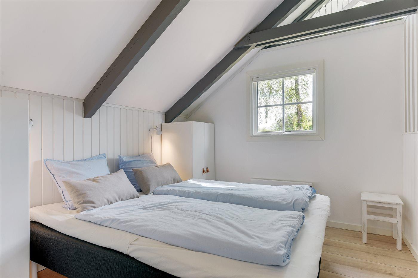 Der er i alt 4 soveværelser. Sovepladserne fordeler sig på: 4 sovepladser i dobbeltsenge. 2 sovepladser i enkeltsenge.