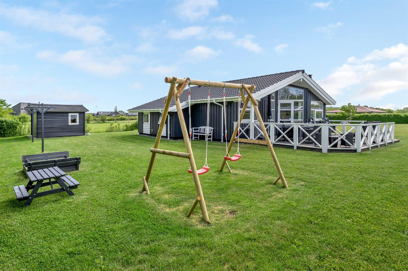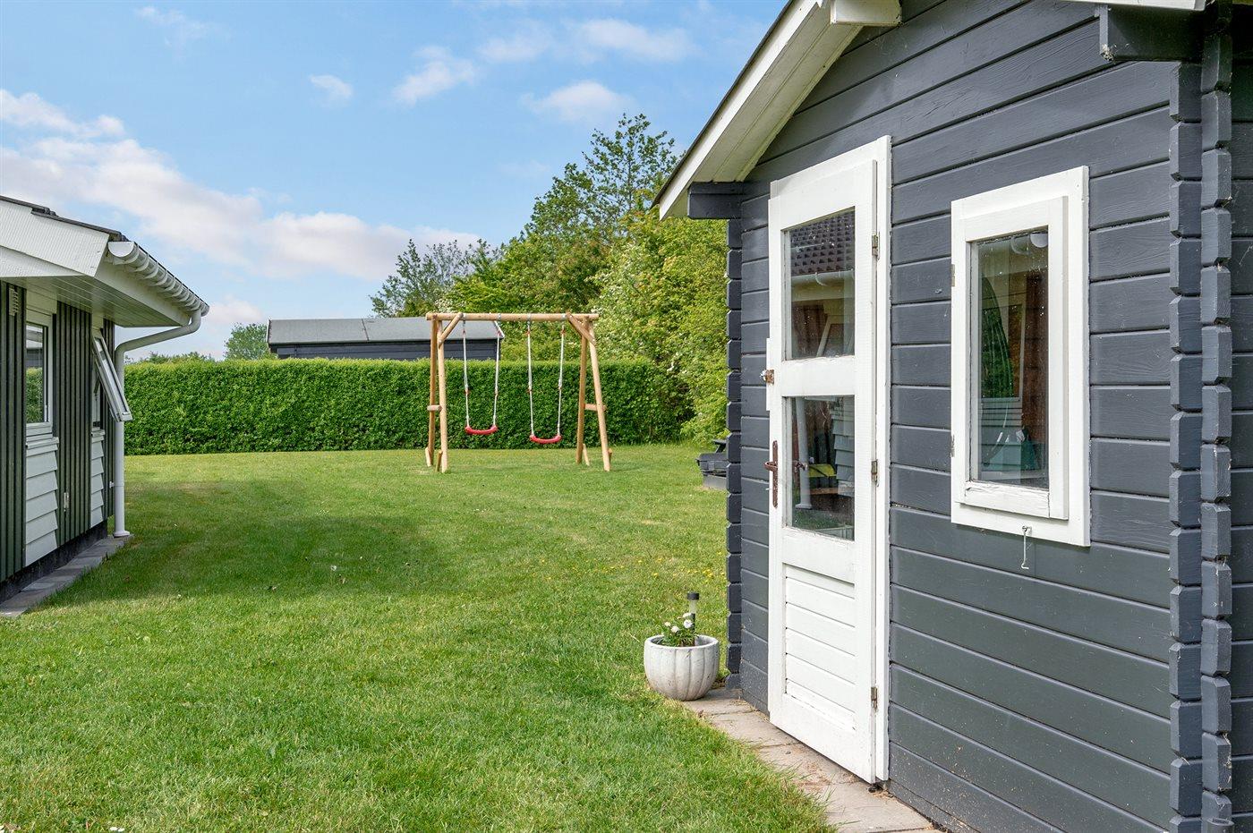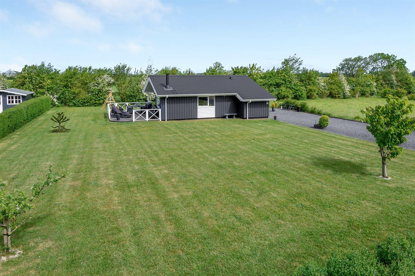 Ferieboligen er beliggende på en 1099 m² stor naturgrund. Der er 700 m til havet. Nærmeste forretning er beliggende i en afstand af 400 m. Til ferieboligen hører 62 m² terrasseareal. Desuden er der 6 m² overdækket terrasse. Gynge. Sandkasse. Grill til rådighed. Der er installeret stik til opladning af elbil. Parkering ved ferieboligen.
