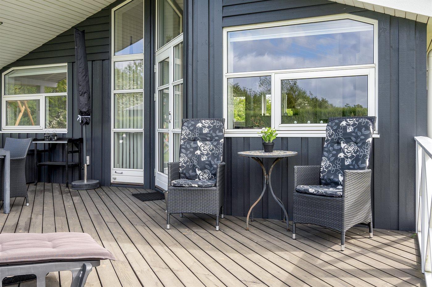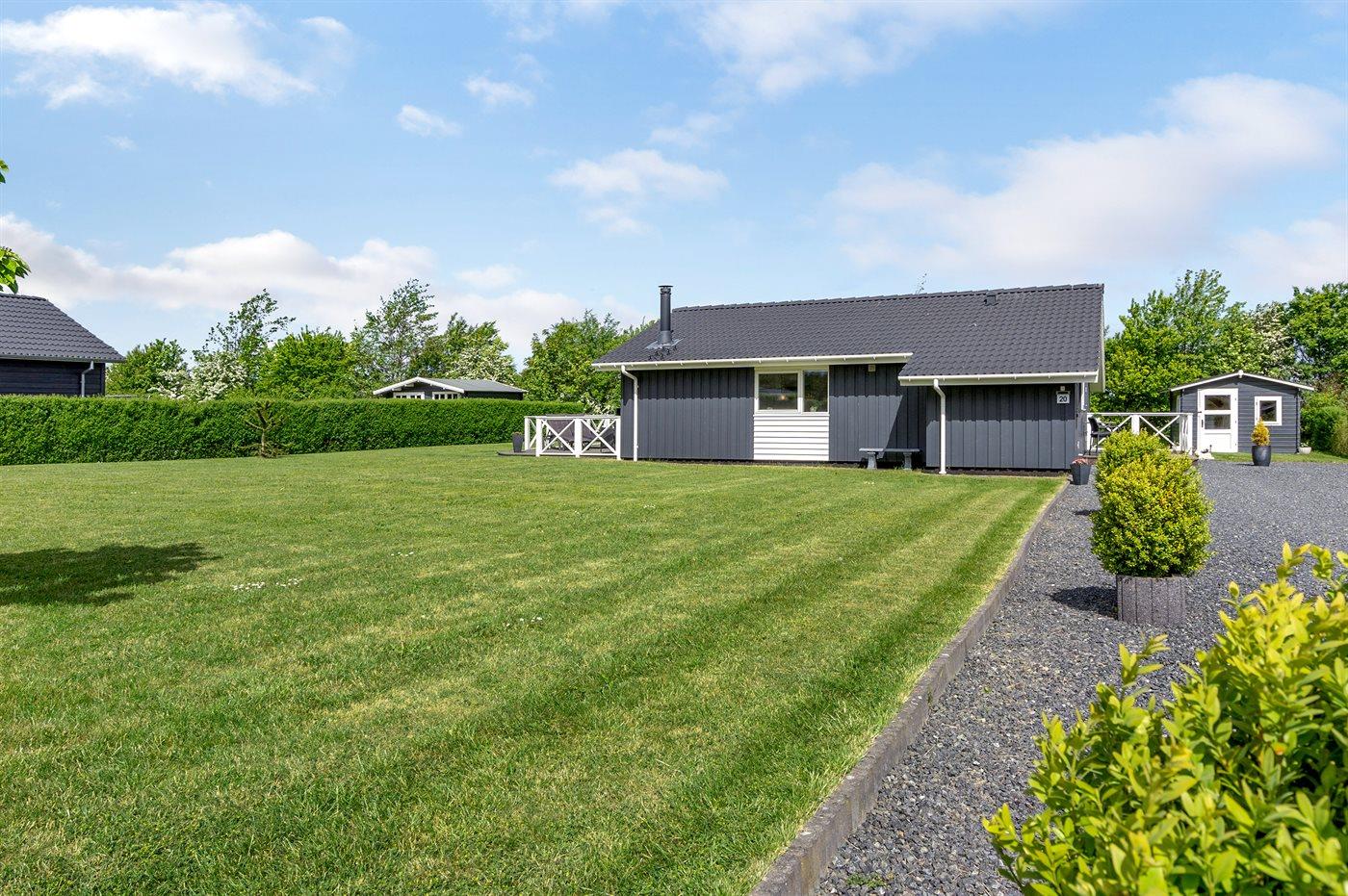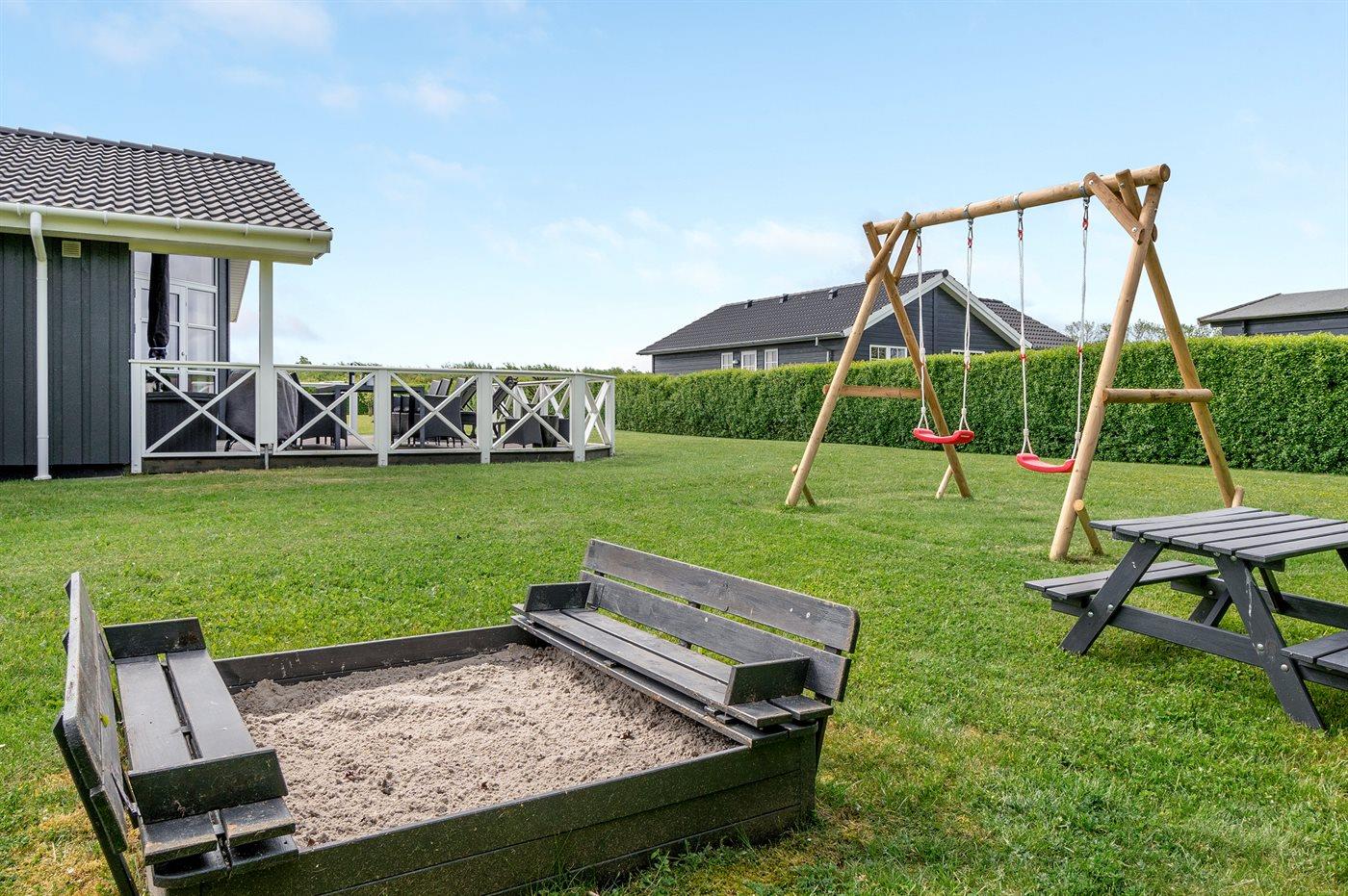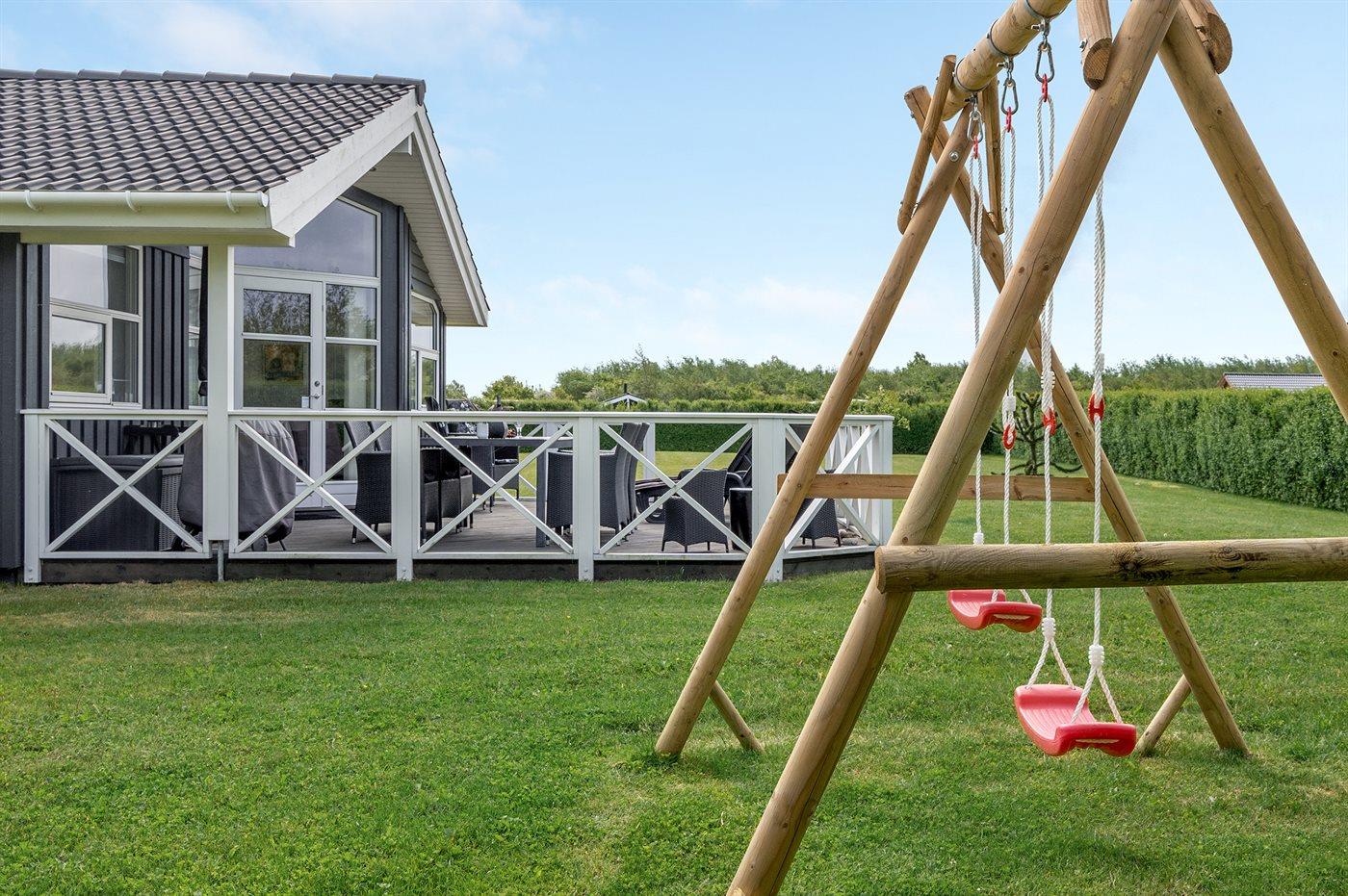 Ferieboligen er beliggende på en 1099 m² stor naturgrund. Der er 700 m til havet. Nærmeste forretning er beliggende i en afstand af 400 m. Til ferieboligen hører 62 m² terrasseareal. Desuden er der 6 m² overdækket terrasse. Gynge. Sandkasse. Grill til rådighed. Der er installeret stik til opladning af elbil. Parkering ved ferieboligen.