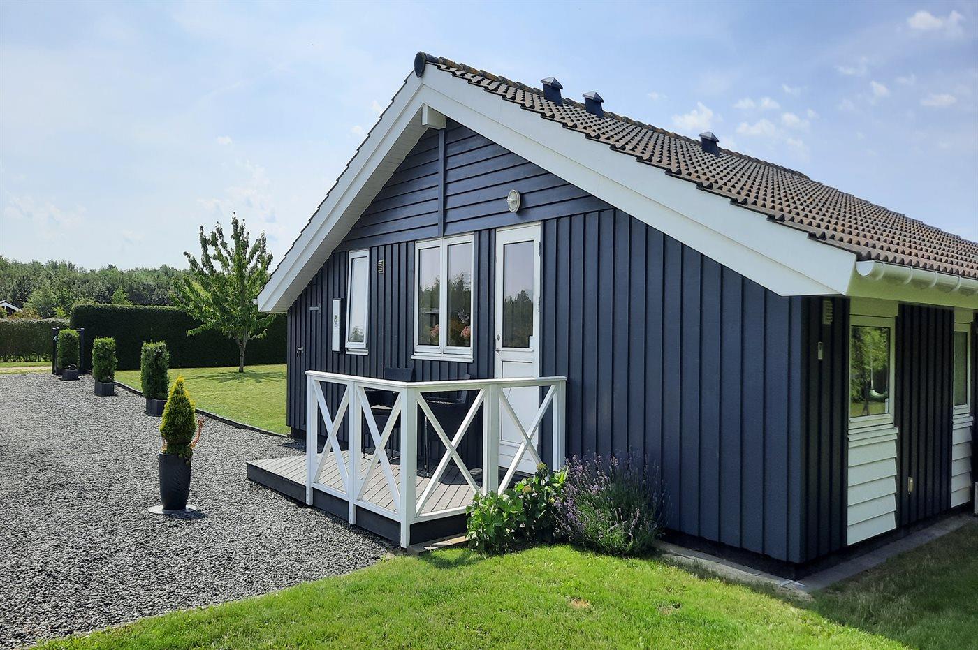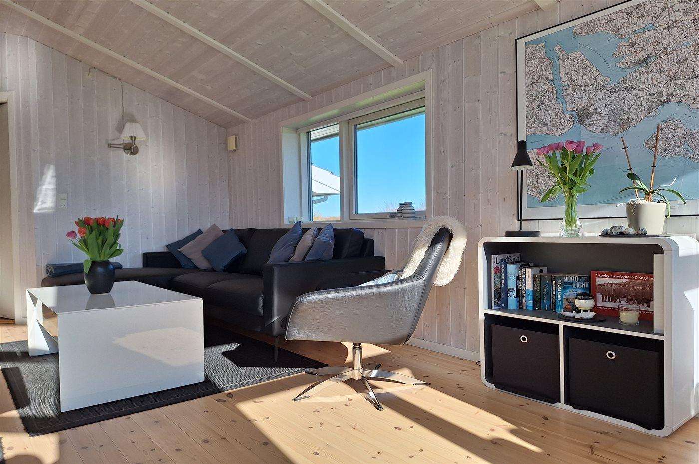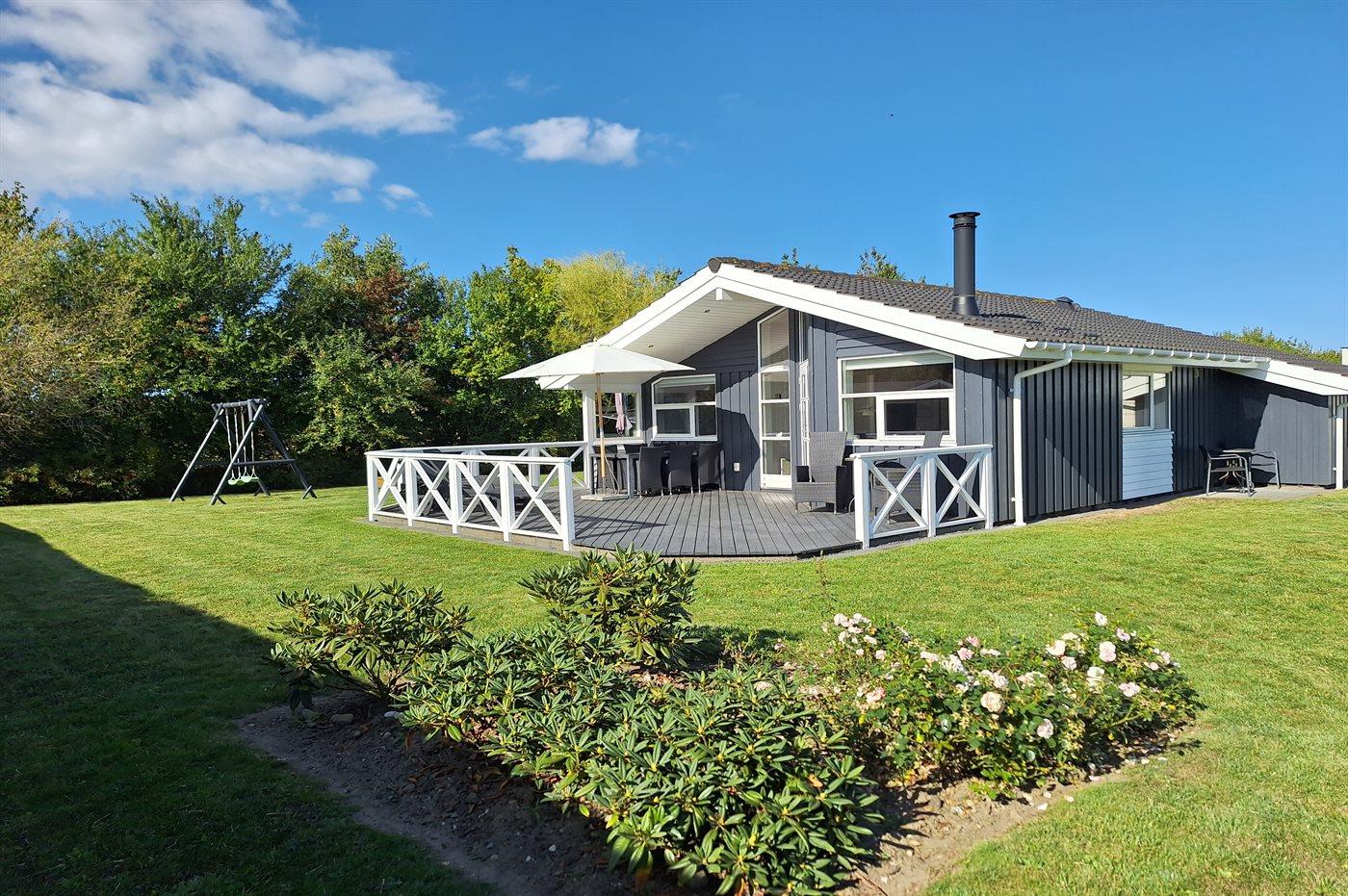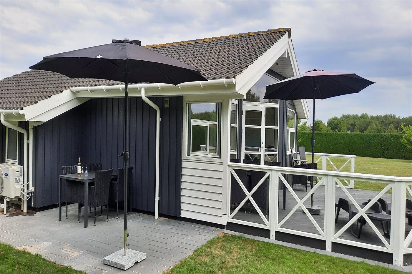 Lækkert sommerhus i naturskønt område nær badestrand med spa og elbil-oplader.