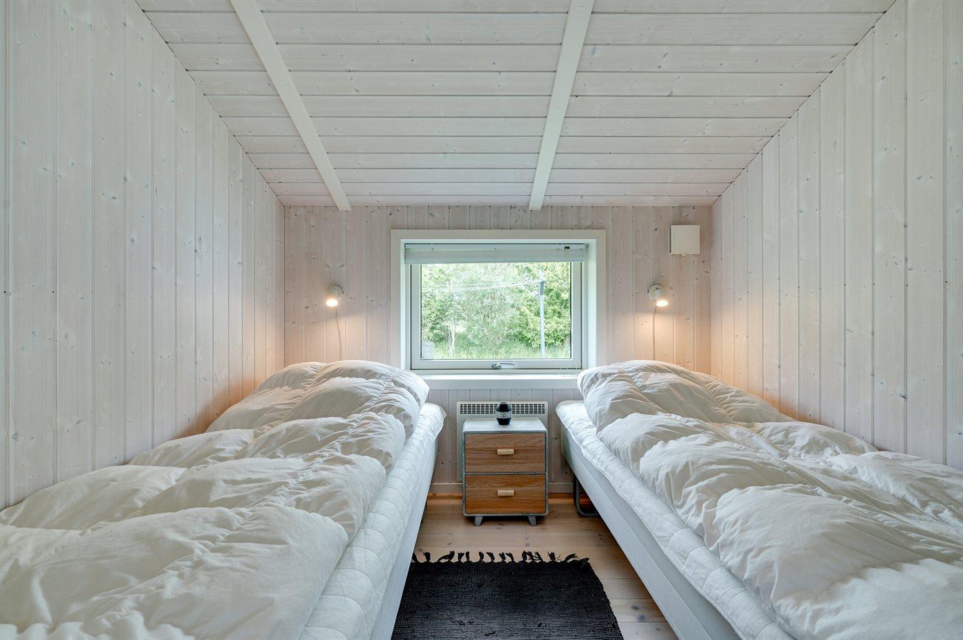 Der er i alt 3 soveværelser. Sovepladserne fordeler sig på: 4 sovepladser i dobbeltsenge. 2 sovepladser i enkeltsenge. Derudover er der 1 stk. barneseng.