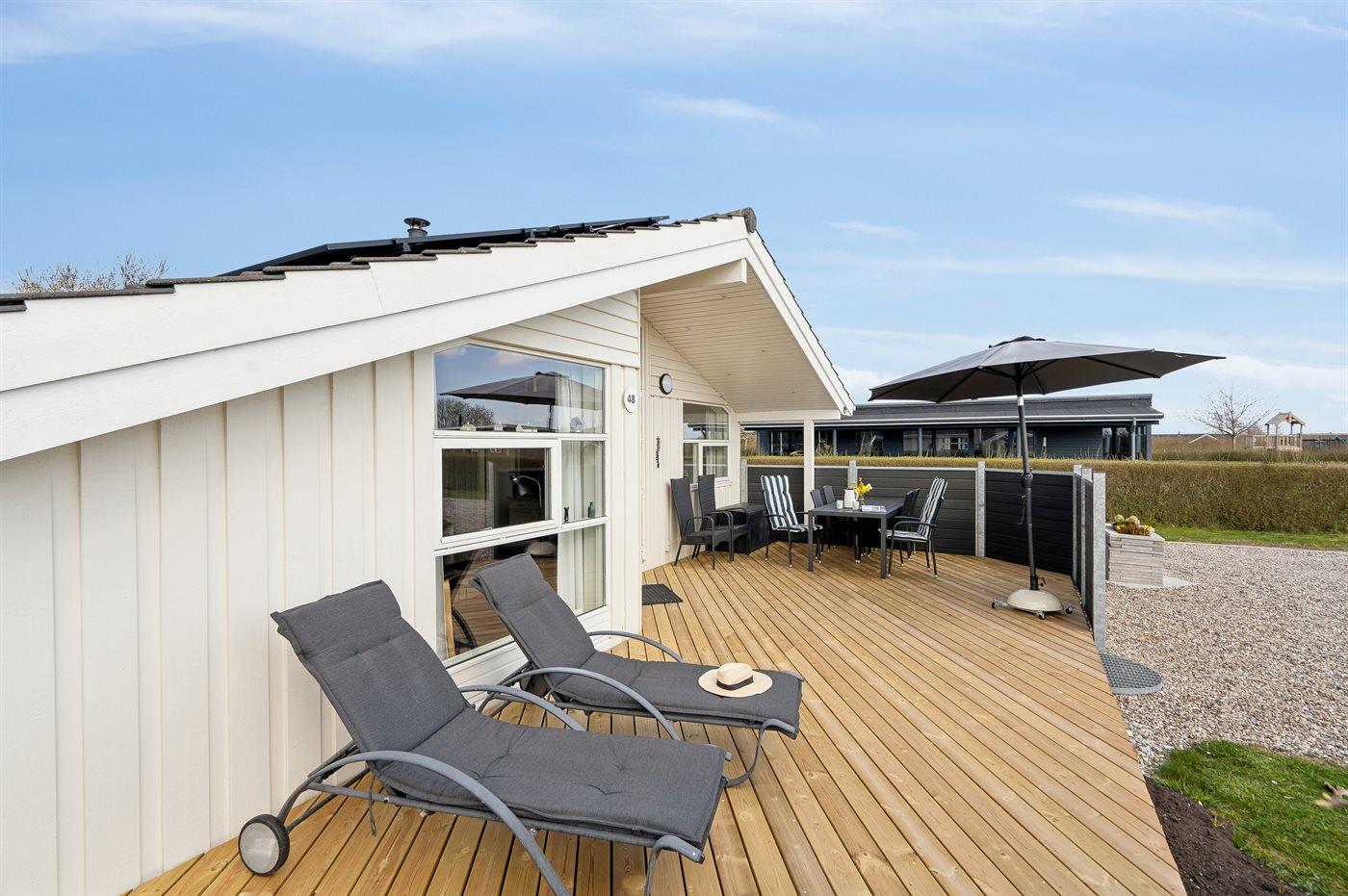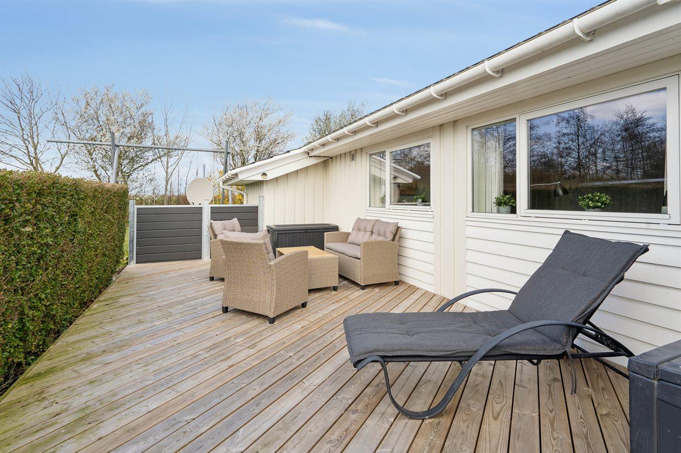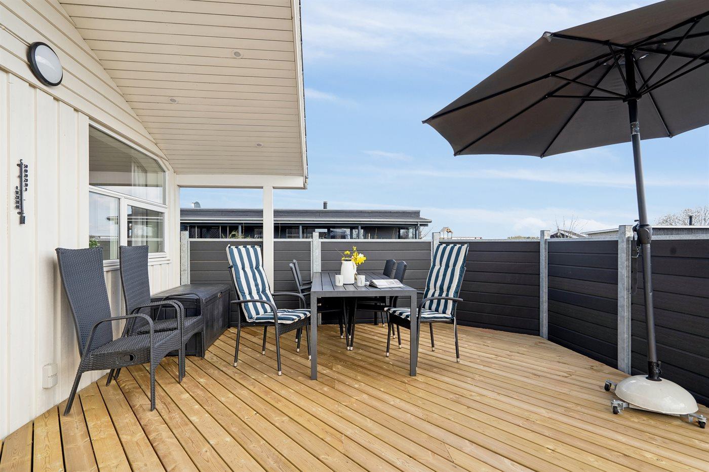 Ferieboligen er beliggende på en 1066 m² stor havegrund. Der er 900 m til havet. Nærmeste forretning er beliggende i en afstand af 2000 m. Der er en golfbane i en afstand af 14000 m. Til ferieboligen hører 75 m² terrasseareal. Desuden er der 10 m² overdækket terrasse. Der er redskabsrum med udendørs legeting. Gynge. Sandkasse. Grill til rådighed. Parkering ved ferieboligen.