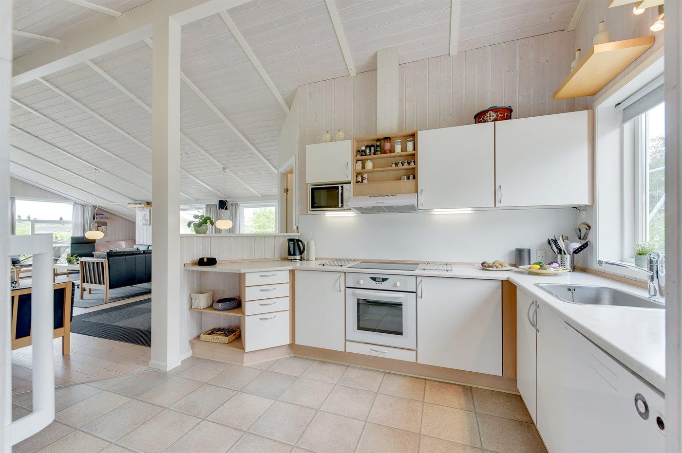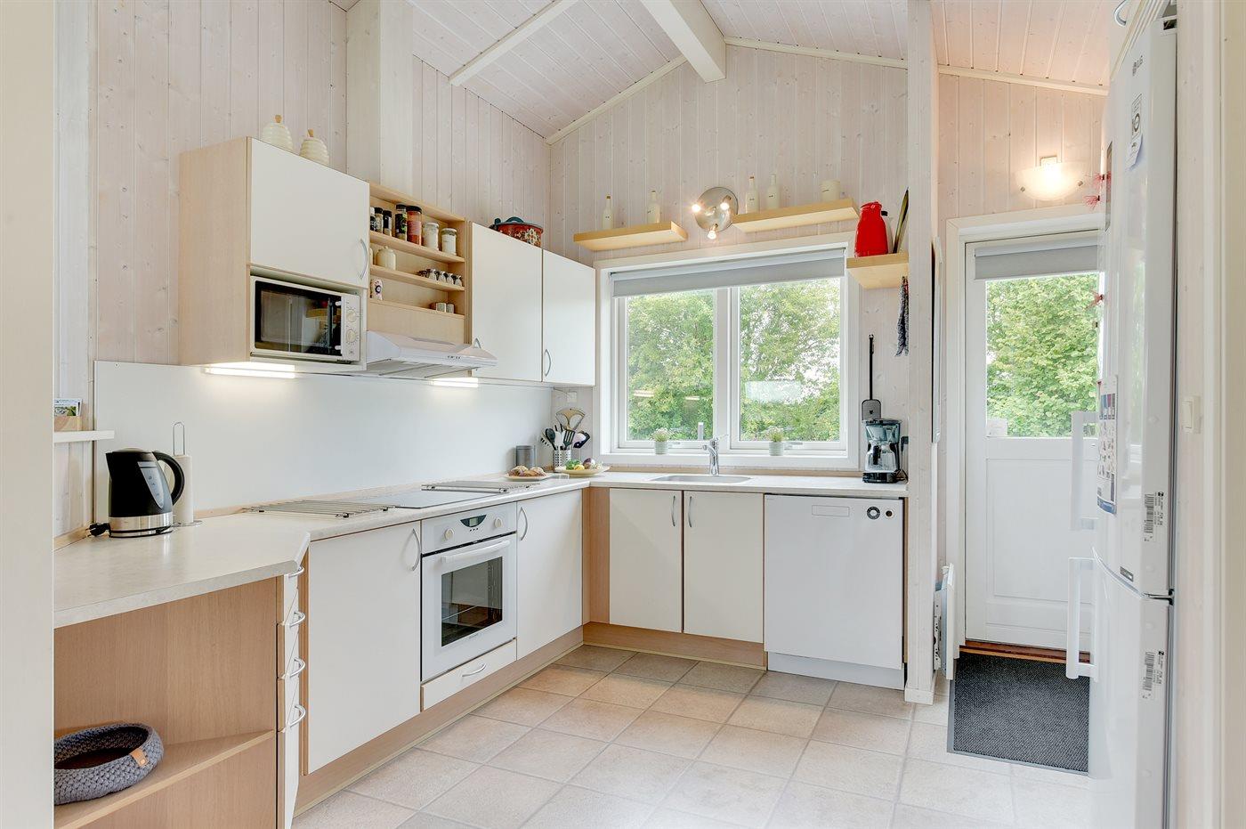 Køkkenet er udstyret med 1 køleskab. Der er 4 keramiske kogeplader, varmluftovn, mikrobølgeovn, Airfryer samt opvaskemaskine.