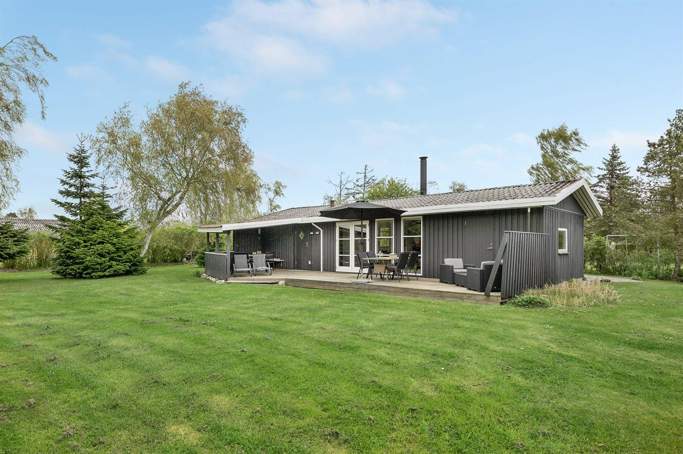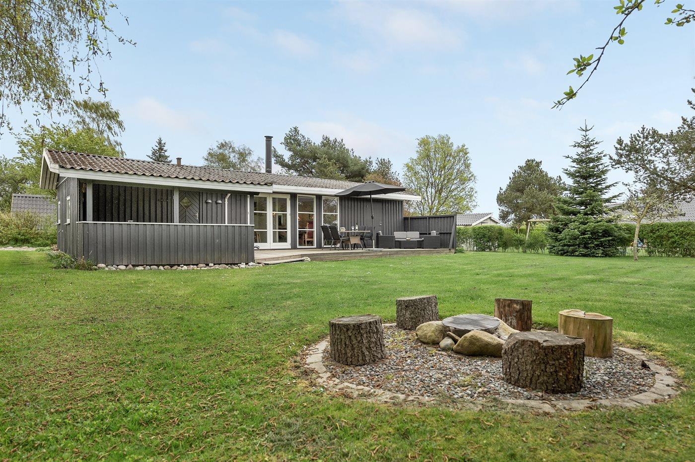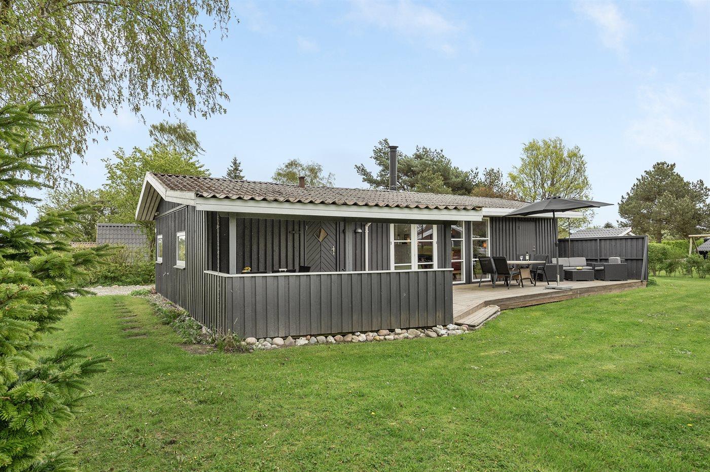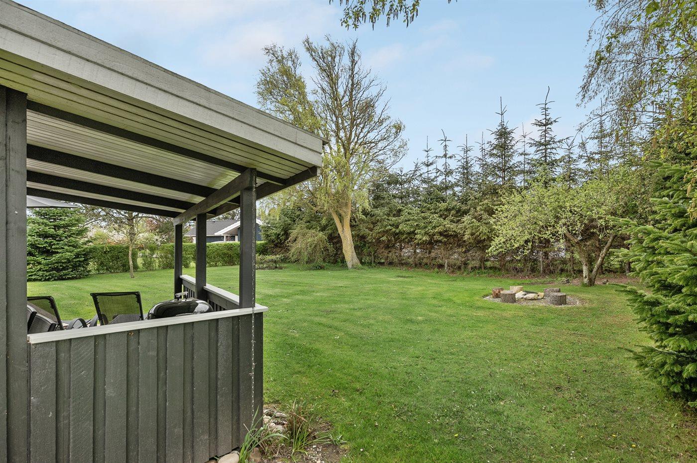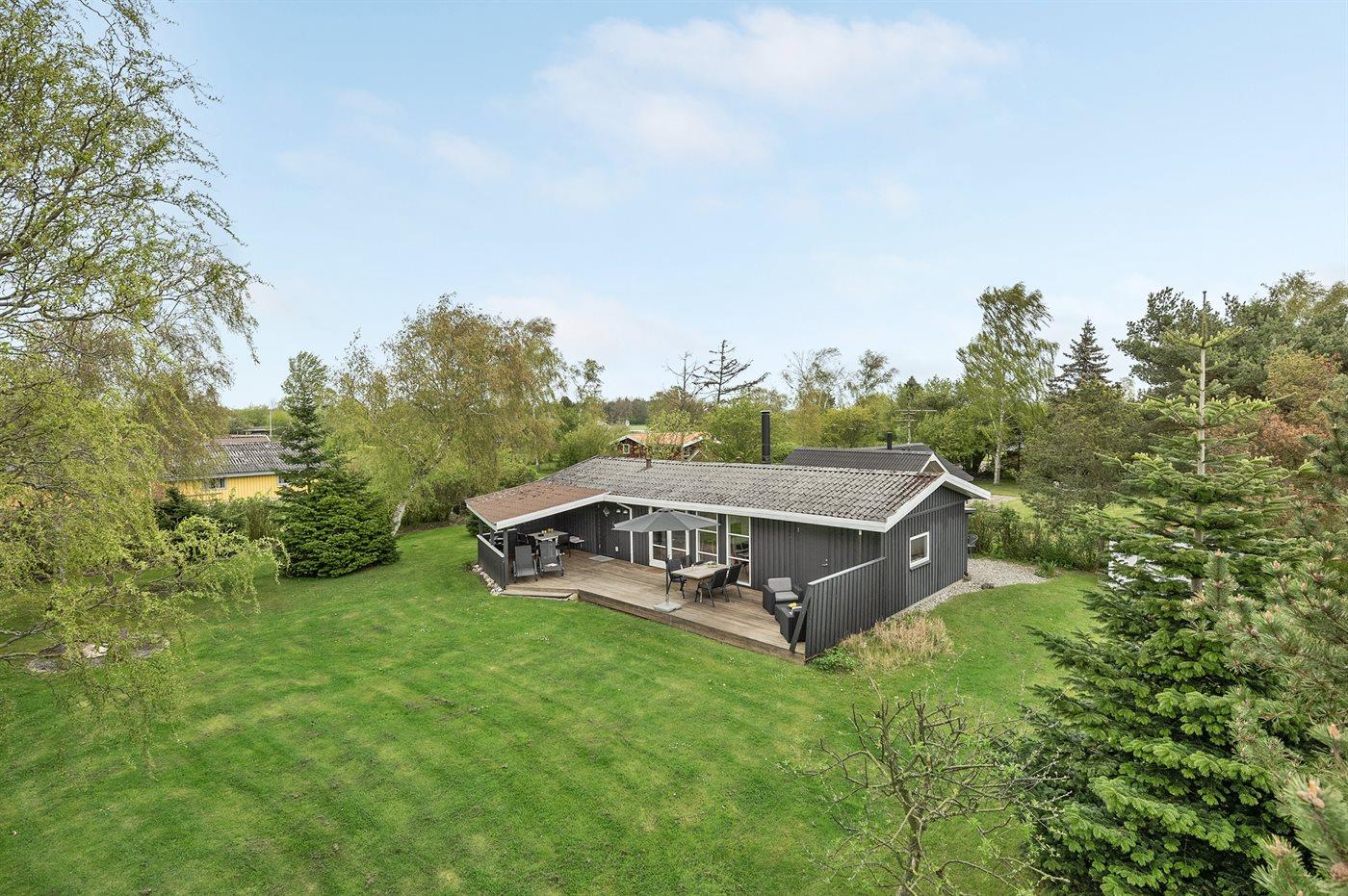 Ferieboligen er beliggende på en 803 m² stor havegrund. Der er 400 m til havet. Nærmeste forretning er beliggende i en afstand af 2000 m. Til ferieboligen hører 40 m² terrasseareal. Desuden er der 20 m² overdækket terrasse. Gynge. Sandkasse. Der er 2 grill til rådighed. Parkering ved ferieboligen.