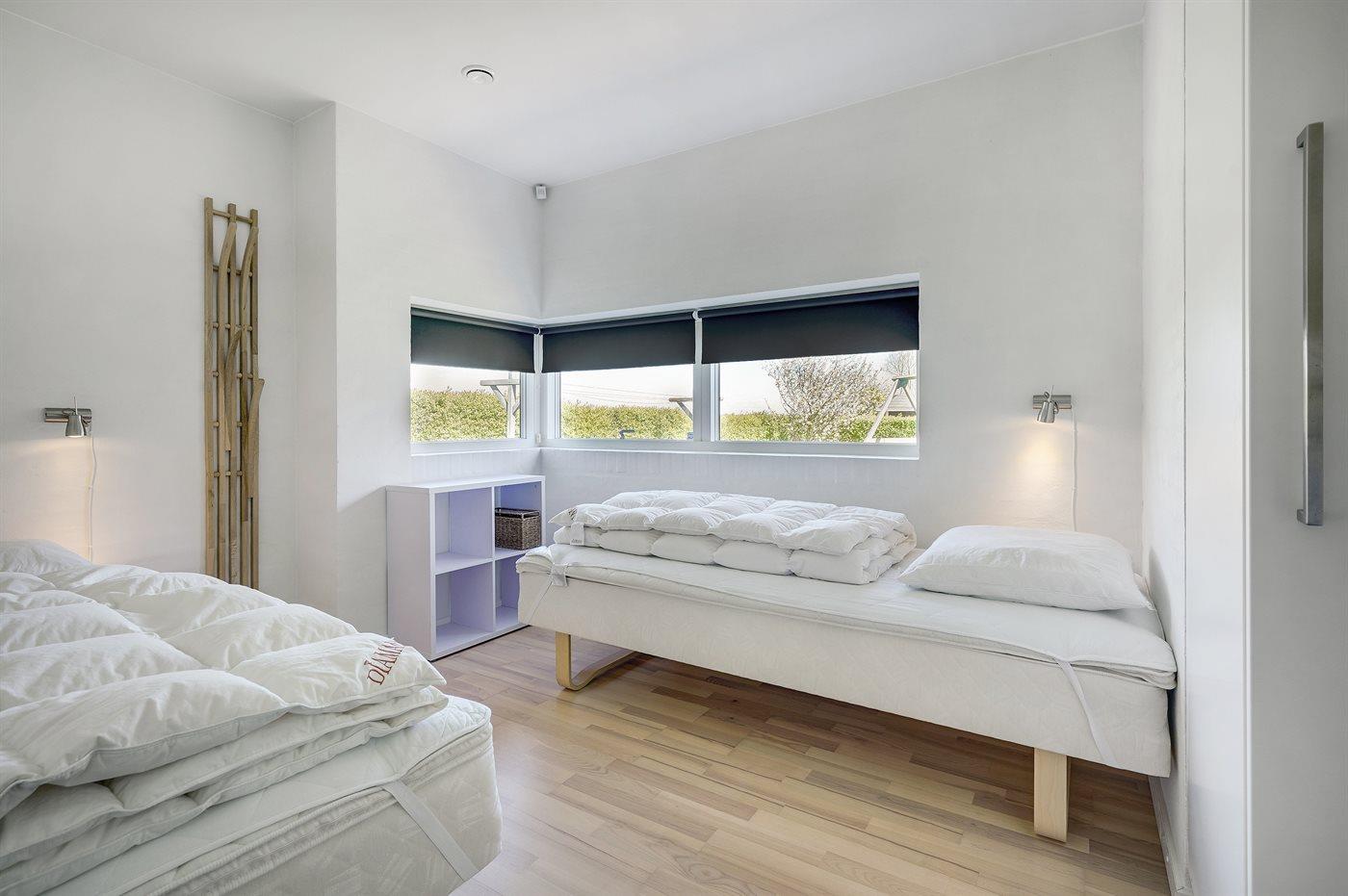 Der er i alt 3 soveværelser. Sovepladserne fordeler sig på: 4 sovepladser i dobbeltsenge. 4 sovepladser i enkeltsenge. 2 af disse sovepladser befinder sig på husets hems. Derudover er der 1 stk. barneseng.