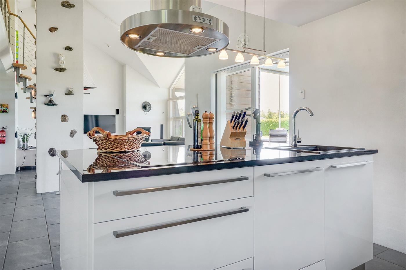 Køkkenet er udstyret med 1 amerikansk køleskab, varmluftovn, mikrobølgeovn samt opvaskemaskine.