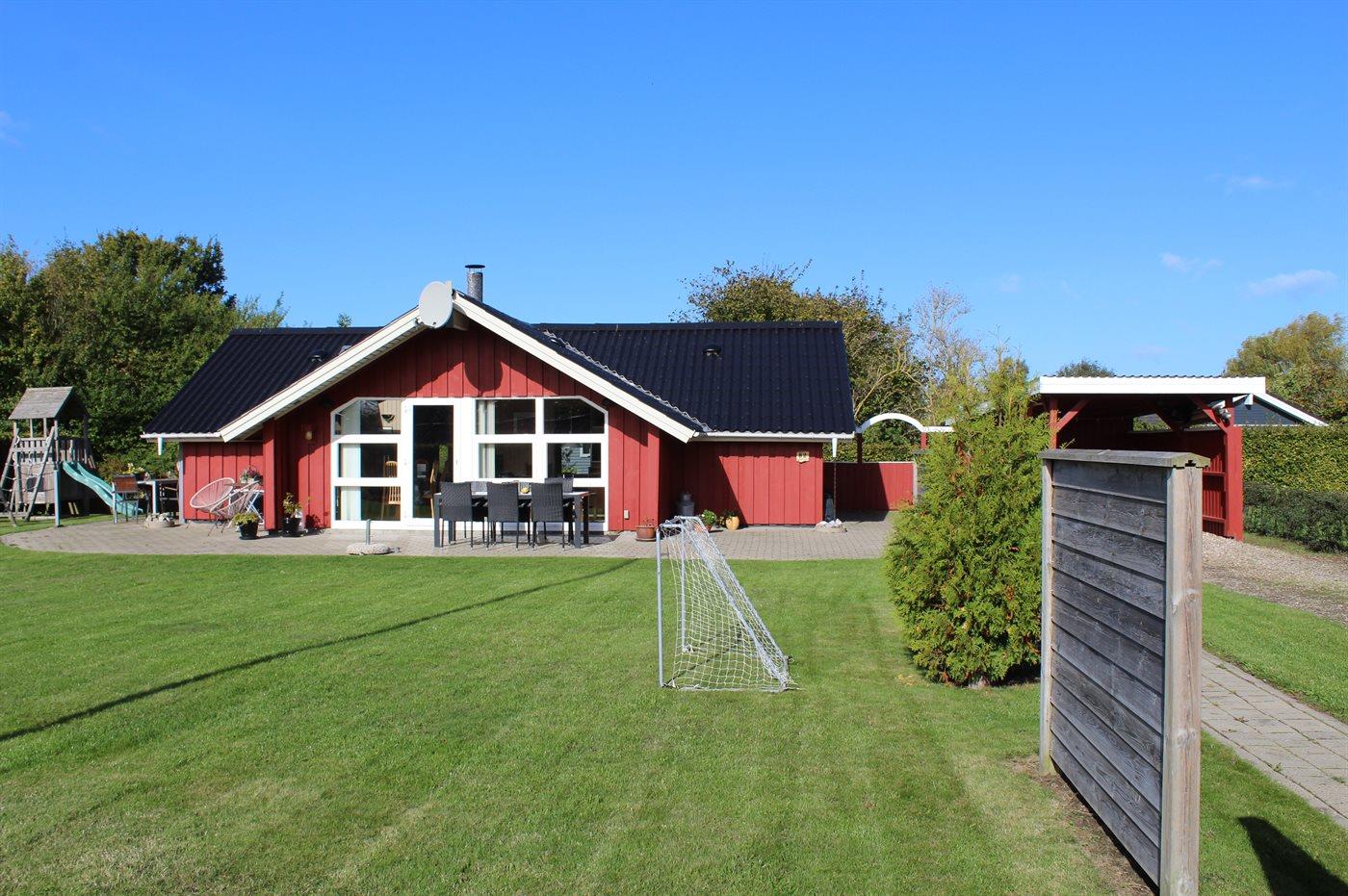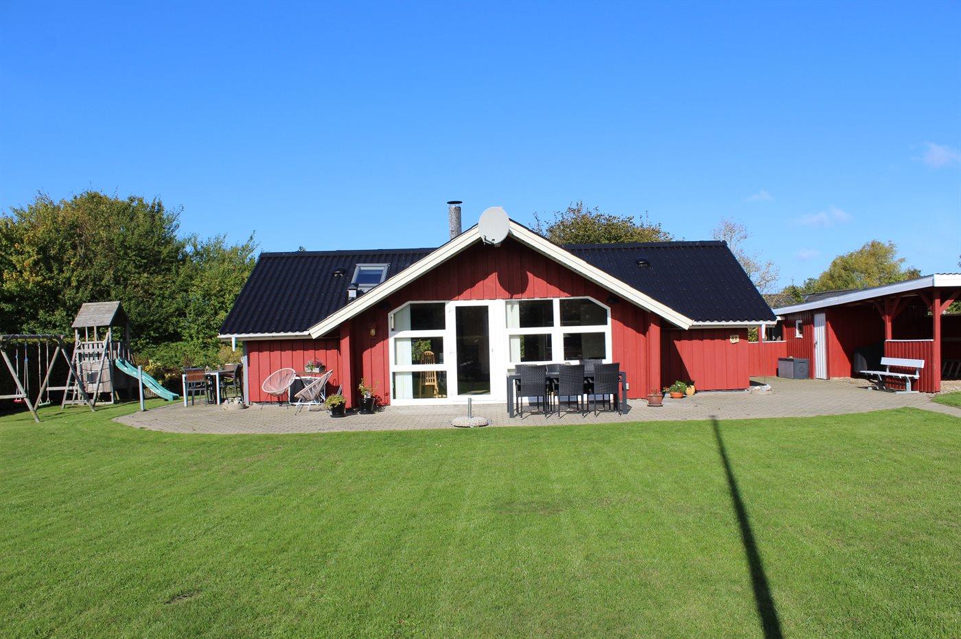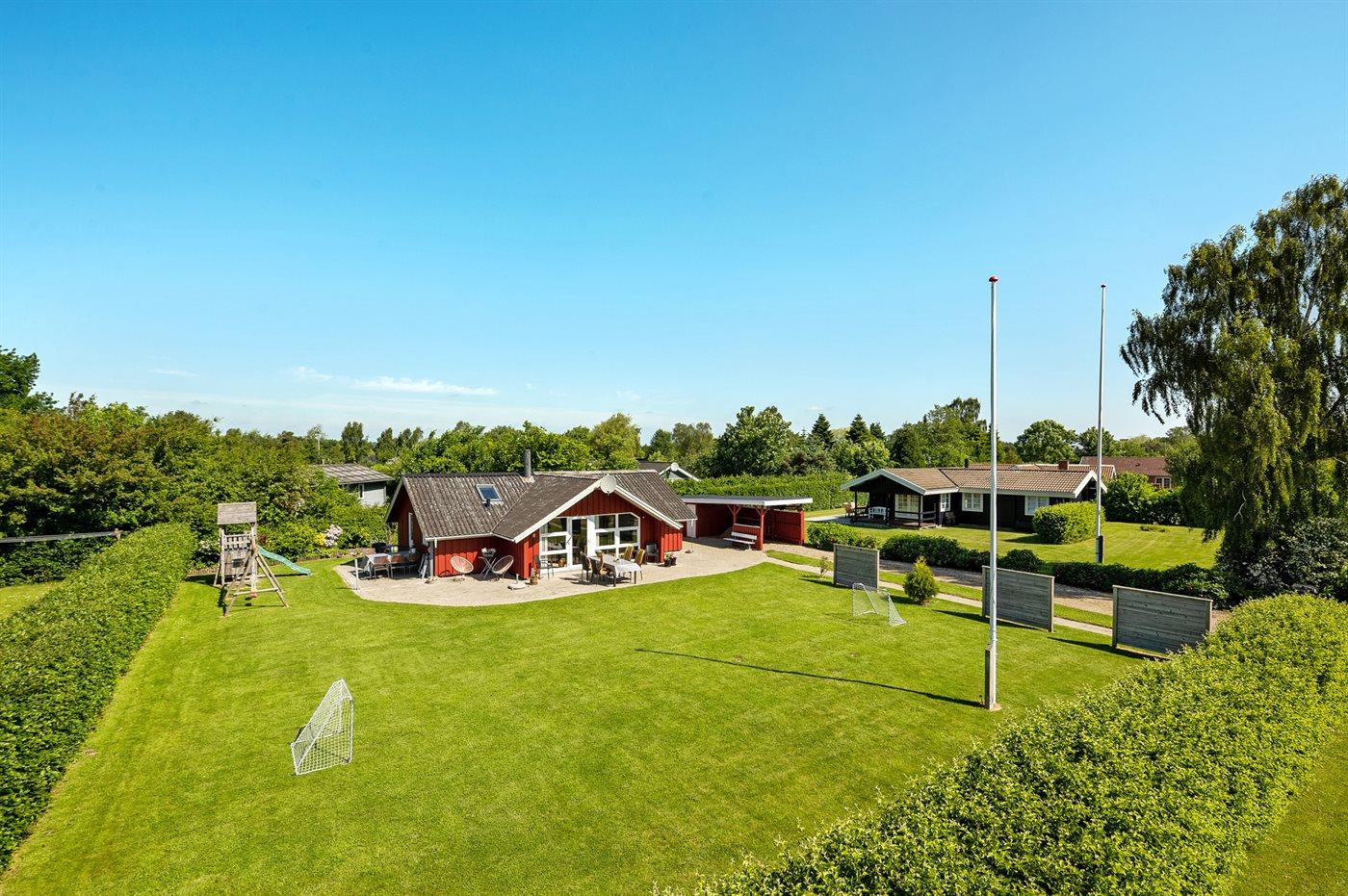 Ferieboligen er beliggende på en 824 m² stor havegrund. Der er 400 m til havet. Nærmeste forretning er beliggende i en afstand af 3000 m. Der er en golfbane i en afstand af 20000 m. Til ferieboligen hører 70 m² terrasseareal. Der er redskabsrum. Gynge. Sandkasse. Legetårn. Rutchebane. Fodboldmål. Grill til rådighed. Der er carport til rådighed. Parkering ved ferieboligen.