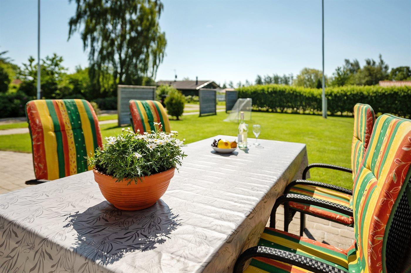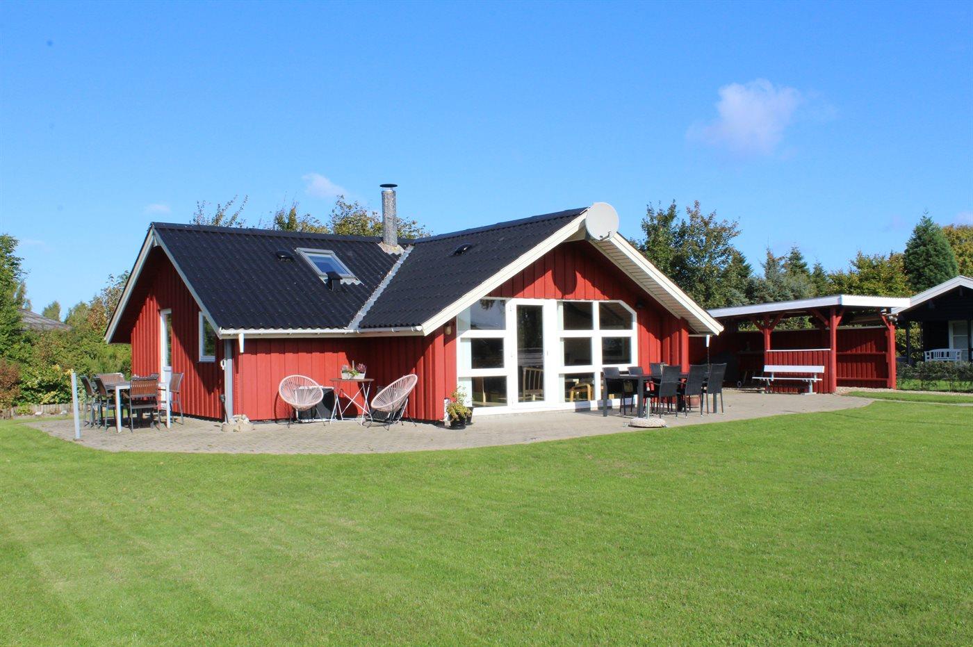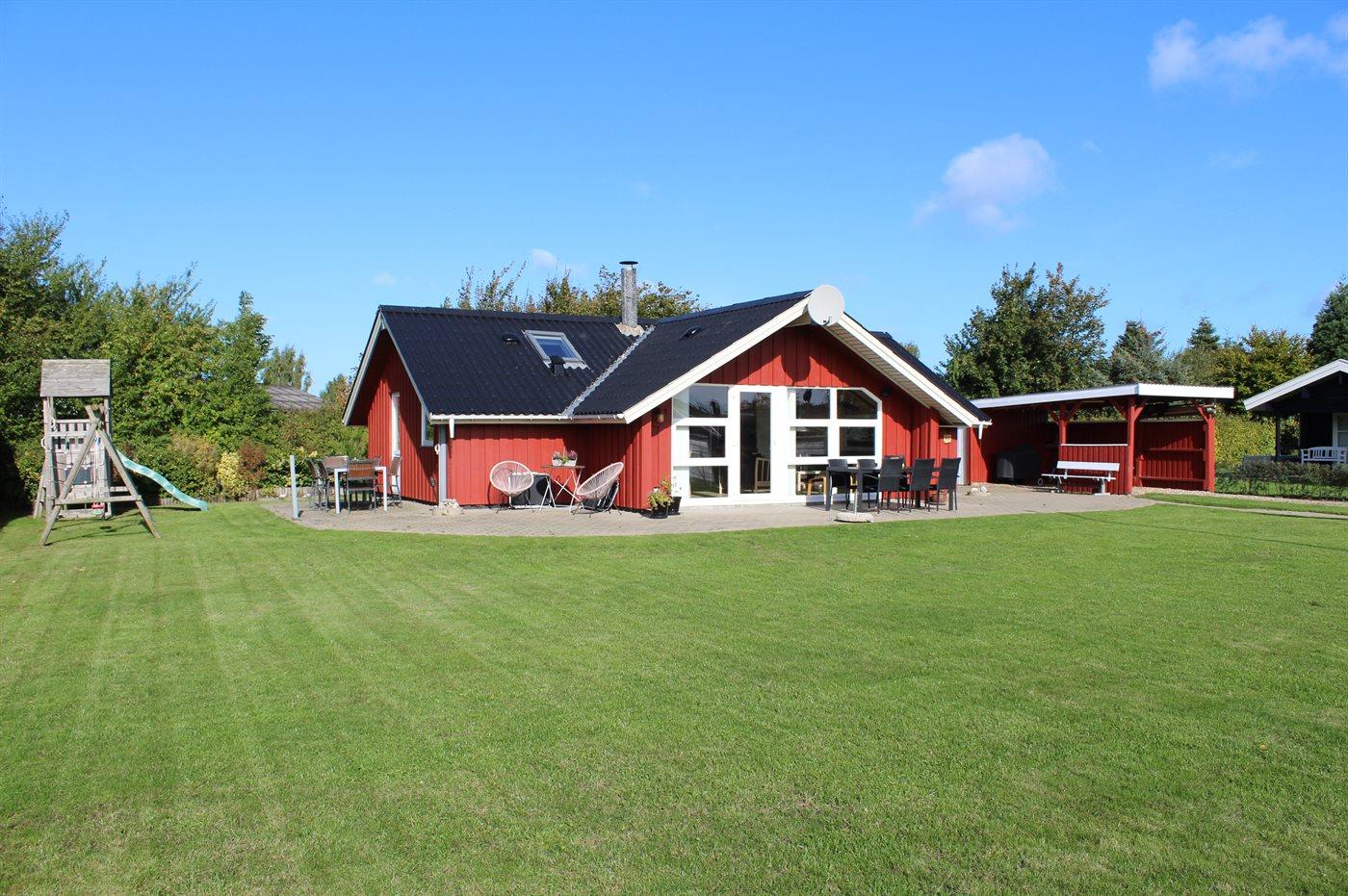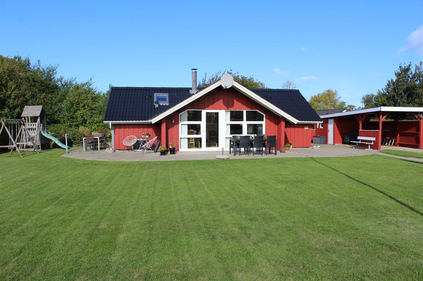 Ferieboligen er beliggende på en 824 m² stor havegrund. Der er 400 m til havet. Nærmeste forretning er beliggende i en afstand af 3000 m. Der er en golfbane i en afstand af 20000 m. Til ferieboligen hører 70 m² terrasseareal. Der er redskabsrum. Gynge. Sandkasse. Legetårn. Rutchebane. Fodboldmål. Grill til rådighed. Der er carport til rådighed. Parkering ved ferieboligen.