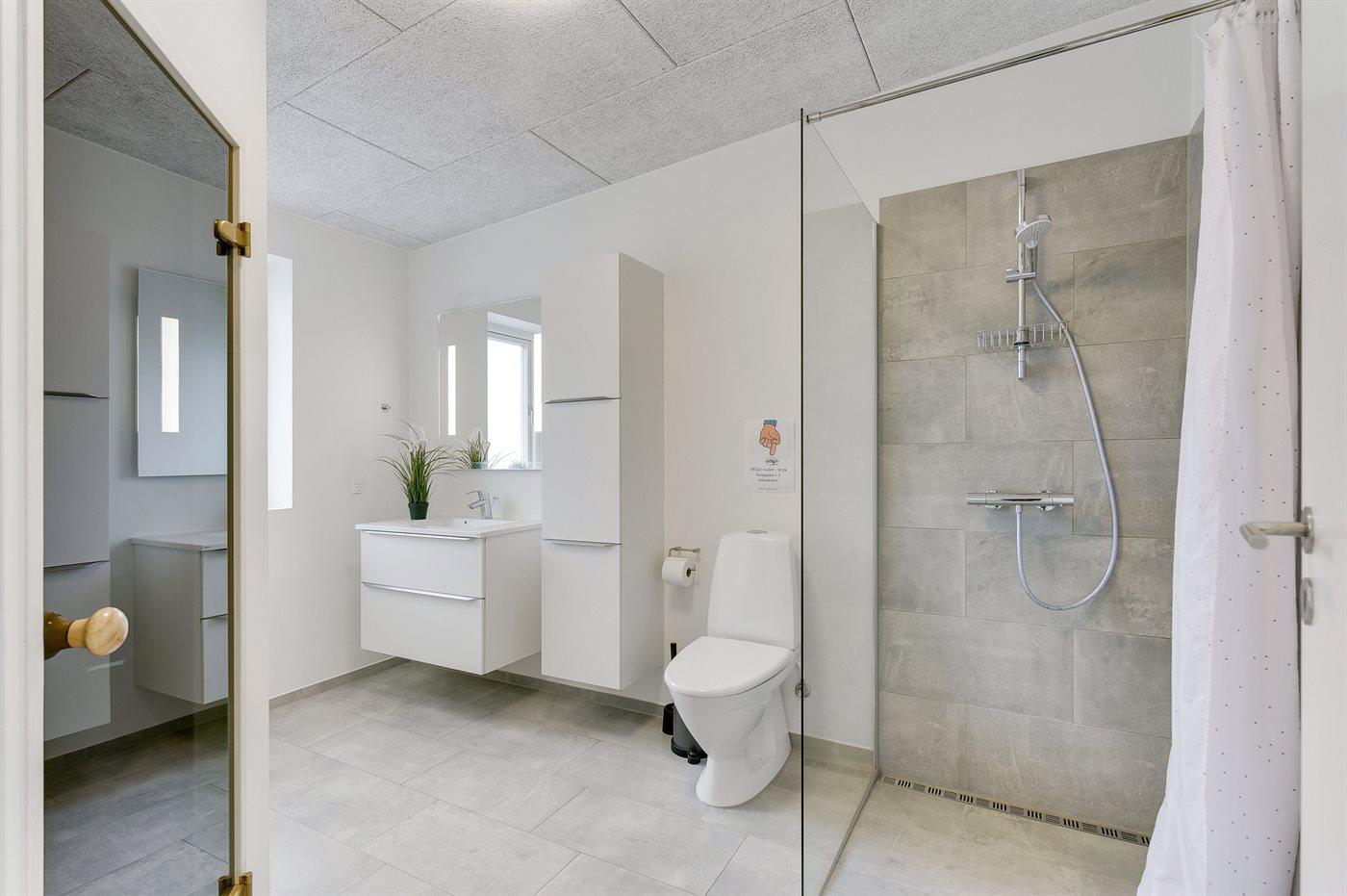 Der er 2 badeværelser med bruseniche og 2 toiletter. Der er gulvvarme på 2 badeværelser. I saunaen er der mulighed for afslapning.