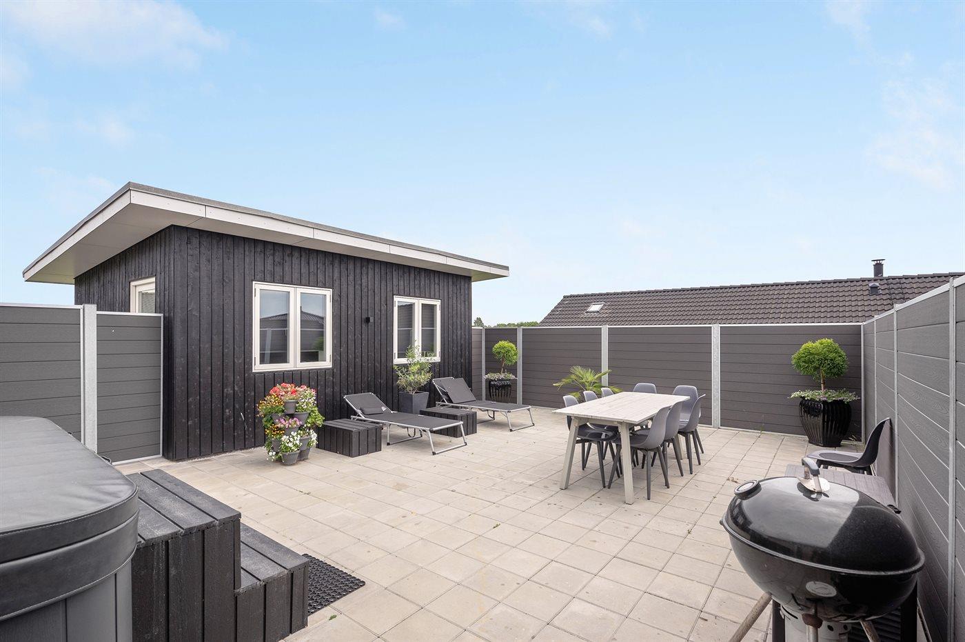 Stort sommerhus med udendørs spabad, sauna og aktivitetsrum tæt på Skovmose strand.