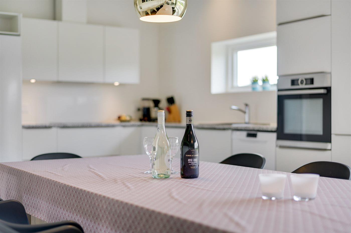 Køkkenet er udstyret med 1 køleskab. Der er 4 keramiske kogeplader, varmluftovn samt opvaskemaskine.