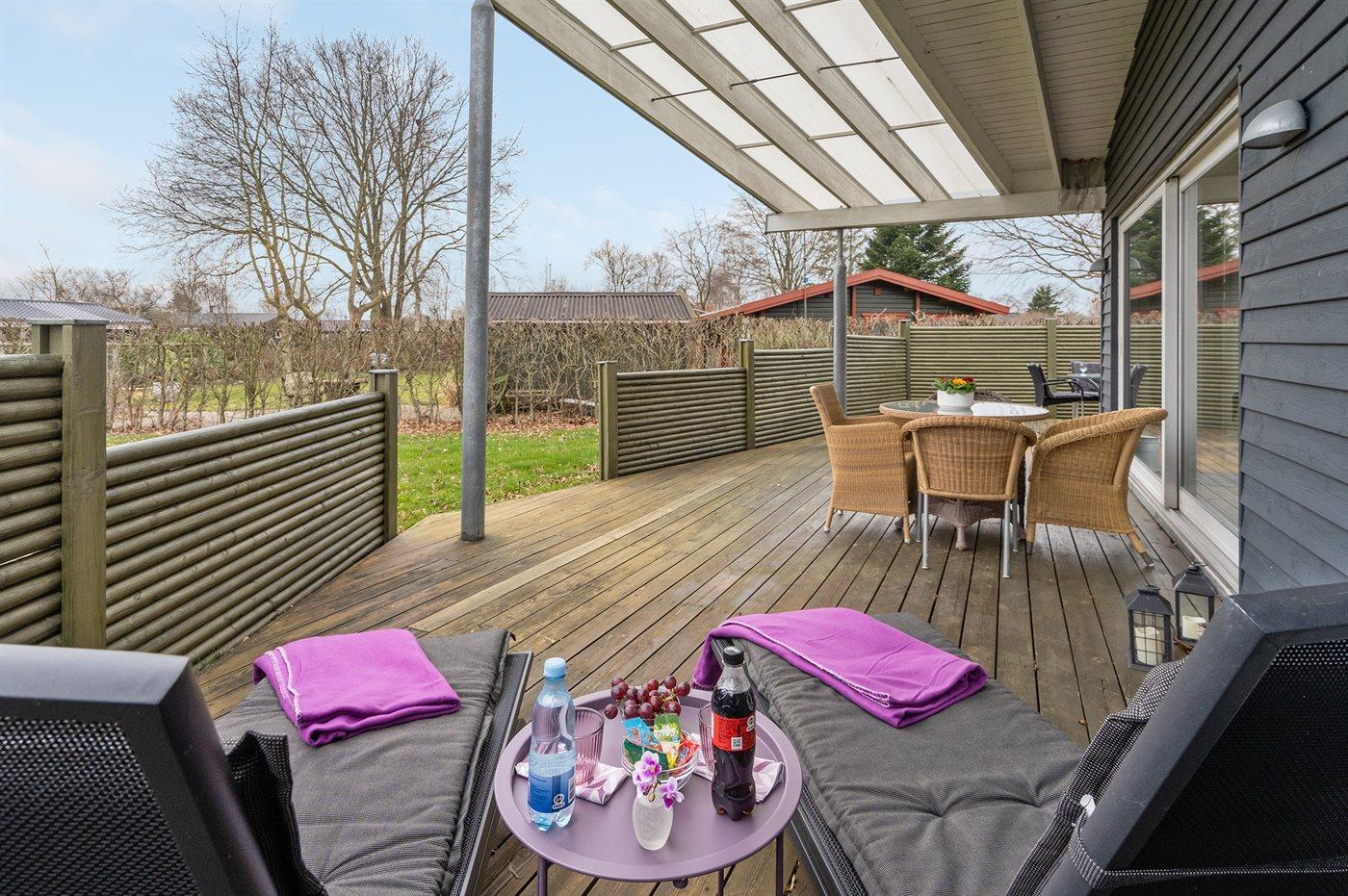Ferieboligen er beliggende på en 850 m² stor havegrund. Der er 200 m til havet. Nærmeste forretning er beliggende i en afstand af 1500 m. Til ferieboligen hører lukket terrasse og til dels overdækket terrasse. Til ferieboligen hører åbent terrasseareal. Der er redskabsrum. Grill til rådighed. Der er carport til rådighed. Parkering ved ferieboligen.