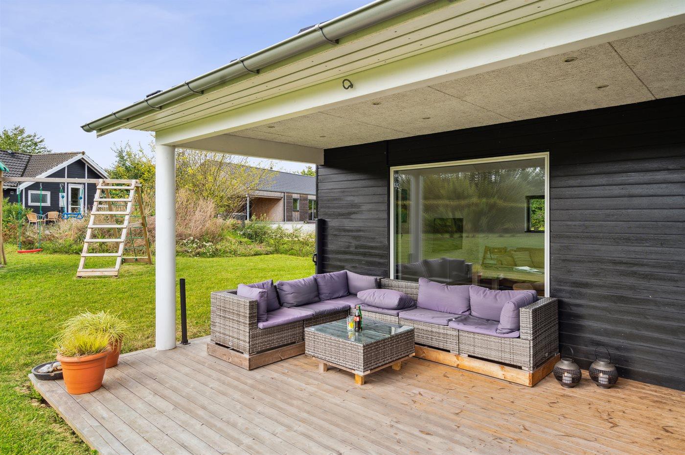 Sommerhus i Skovmose med 4 soveværelser og 1 legeværelse. Huset, der er fra 2022, er belliggende tæt på fantastisk sandstrand.