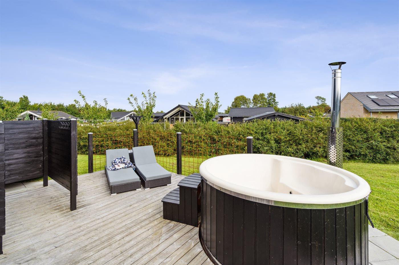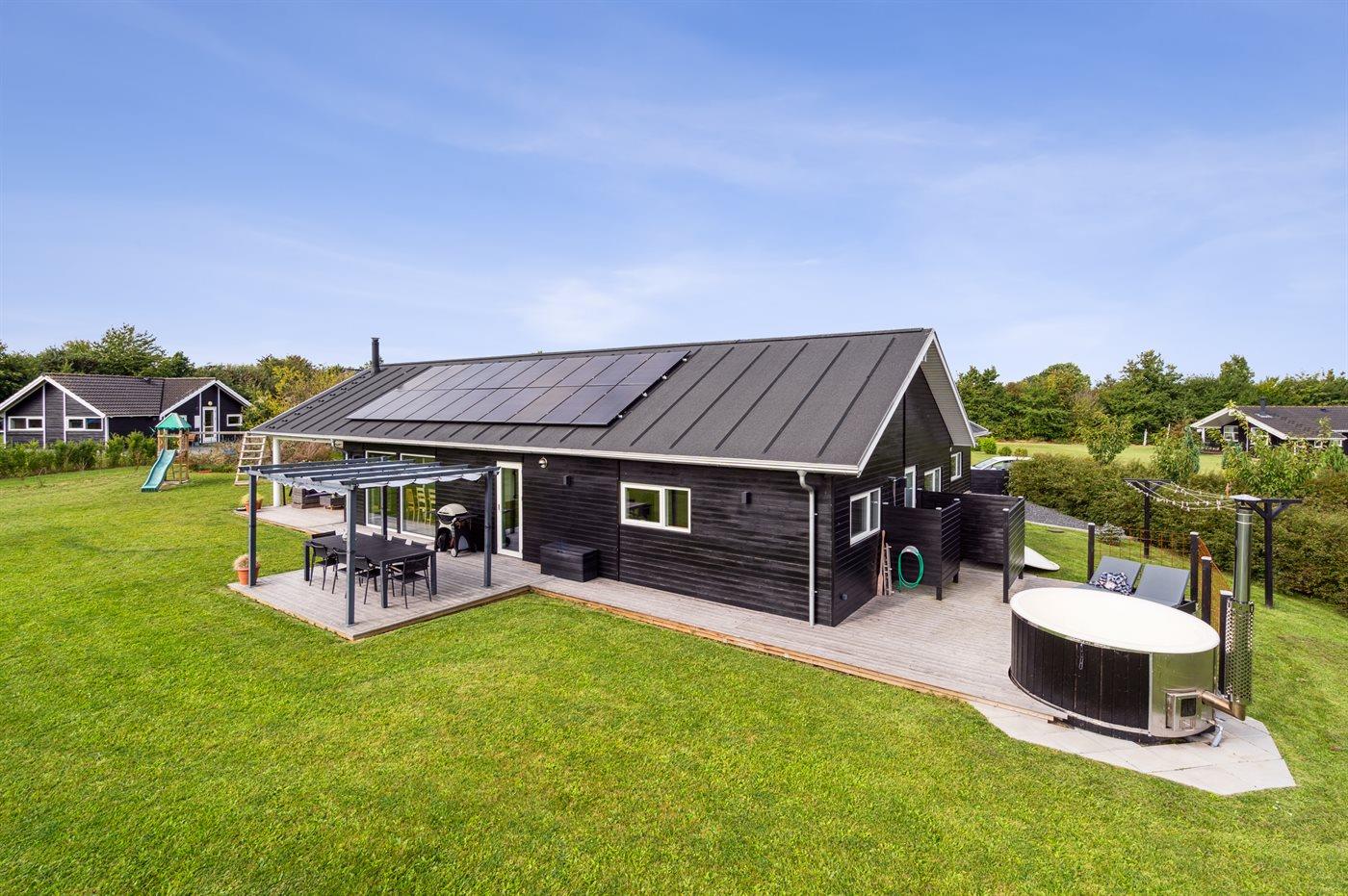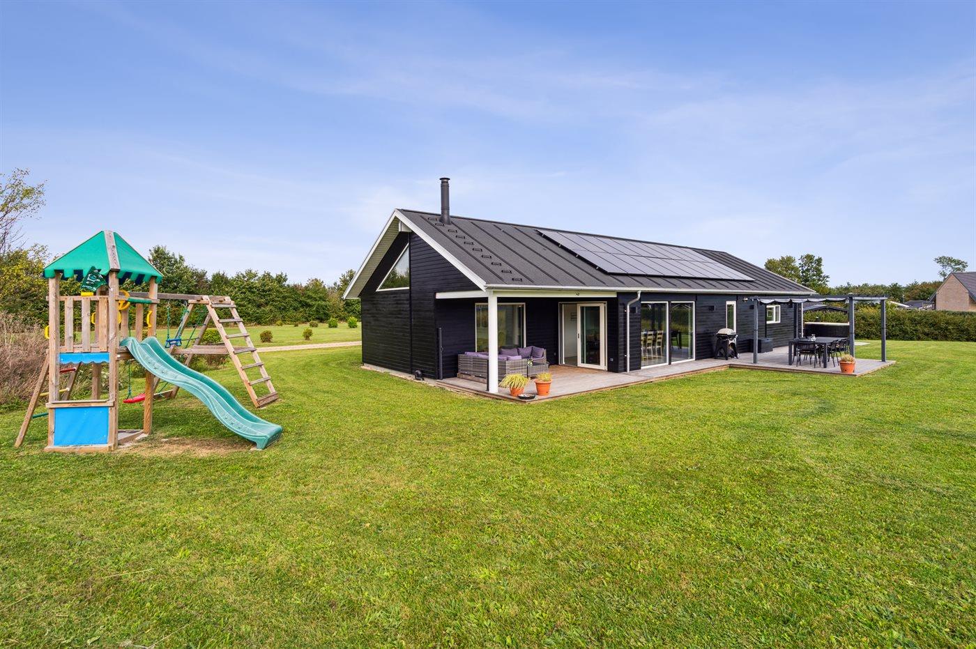 Moderne sommerhus i Skovmose fra 2022, tæt på sandstrand, med spa og aktivitetsrum for hele familien.