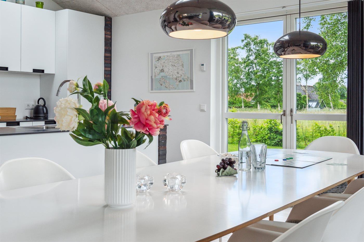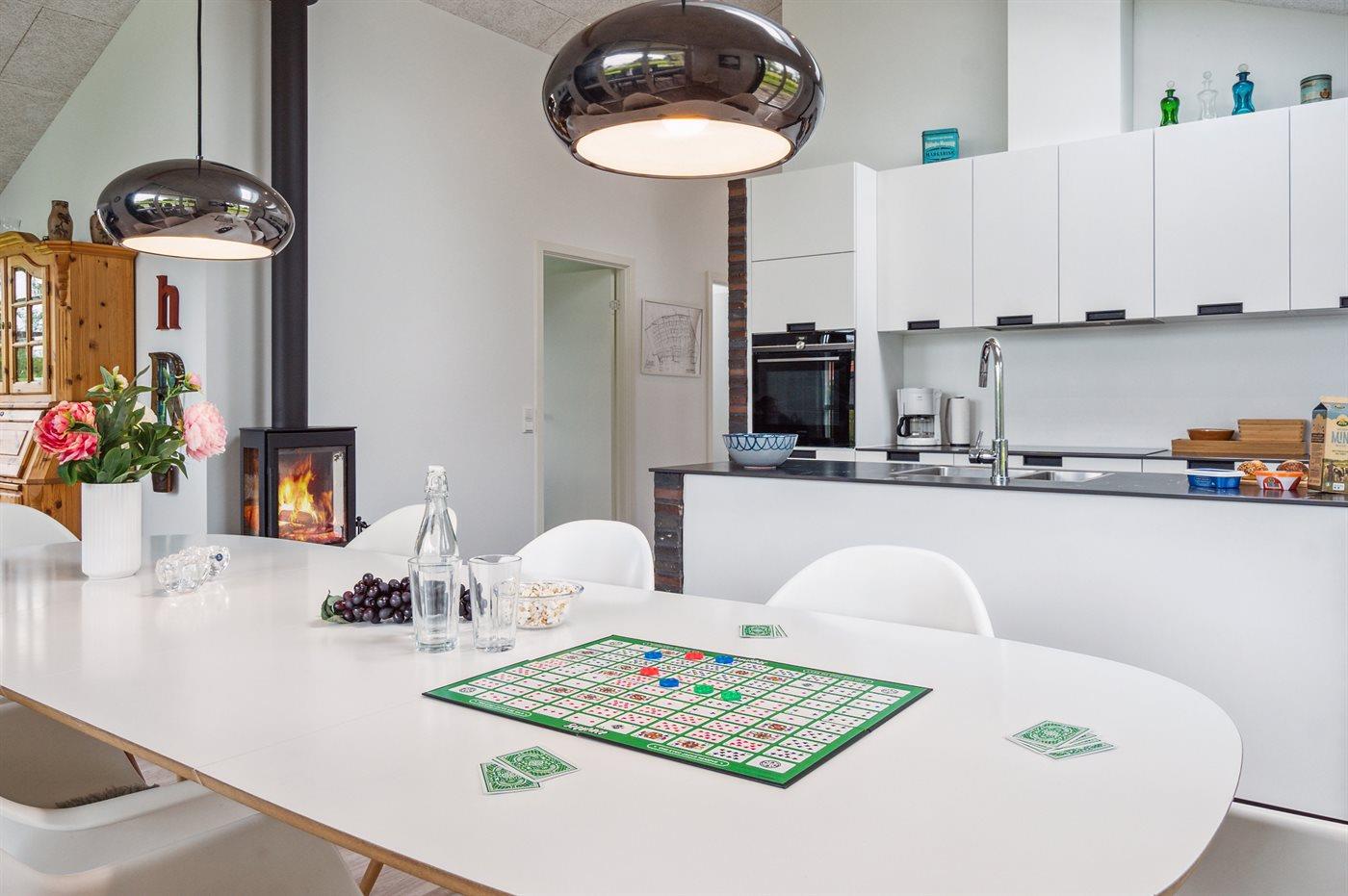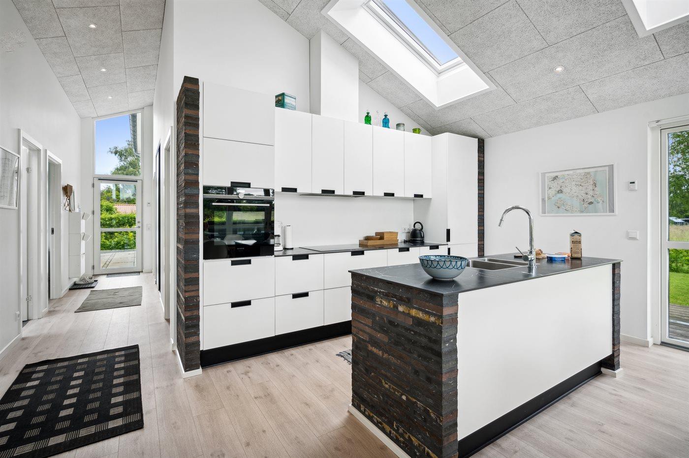 Køkkenet er udstyret med 1 køleskab. Der er 4 induktionskogeplader, varmluftovn, mikrobølgeovn samt opvaskemaskine.