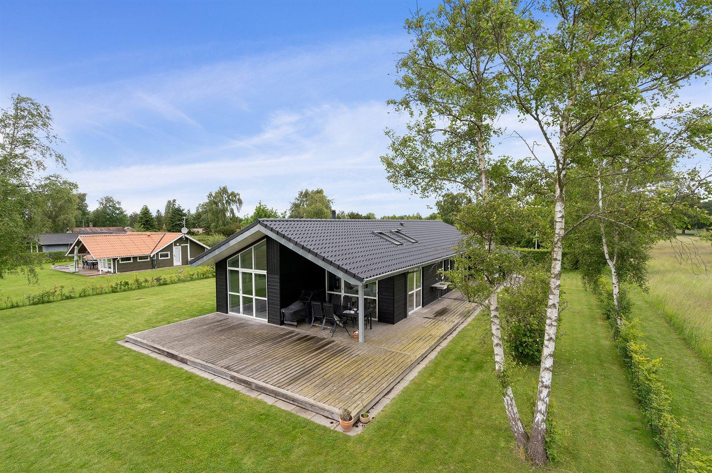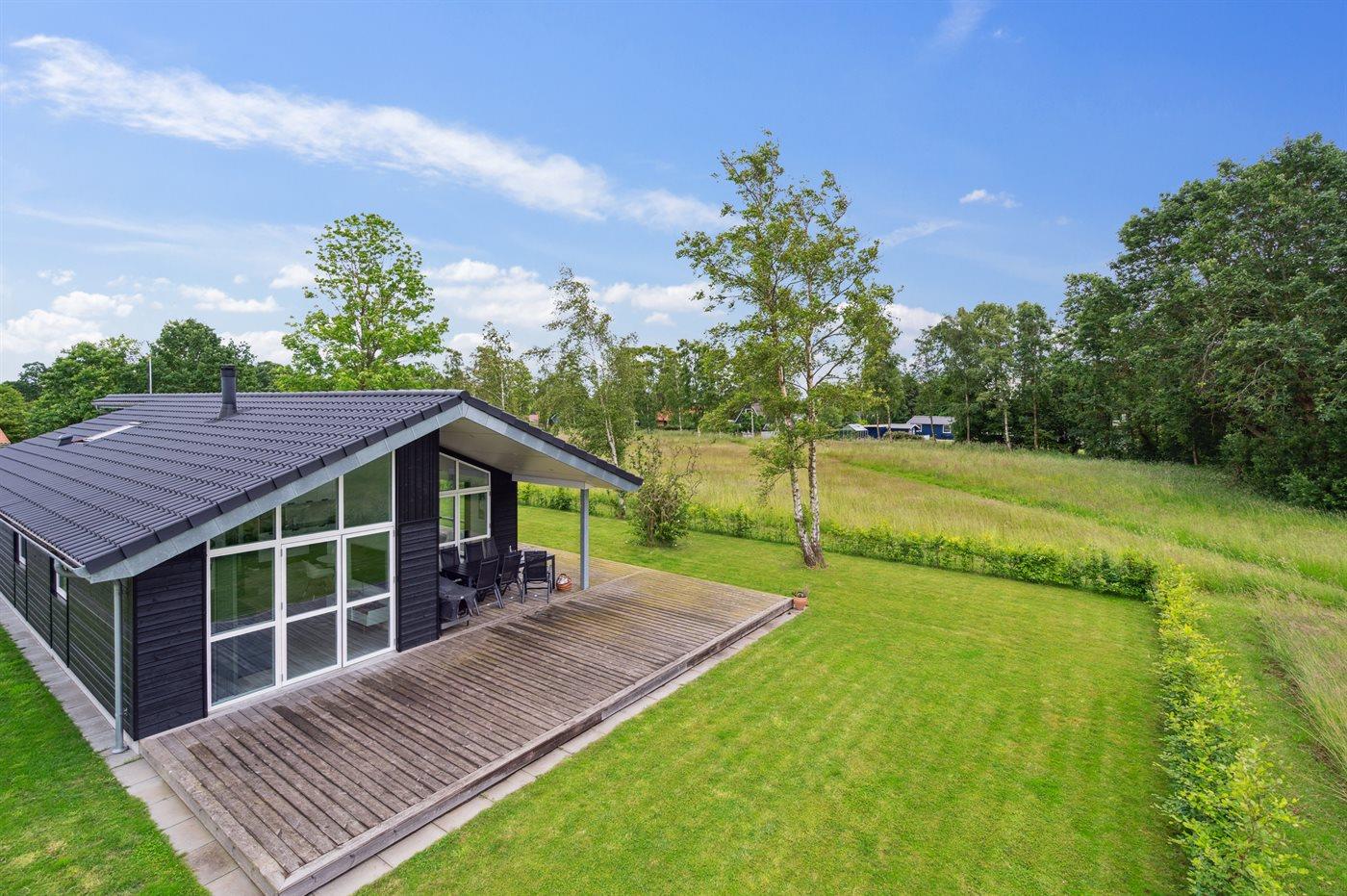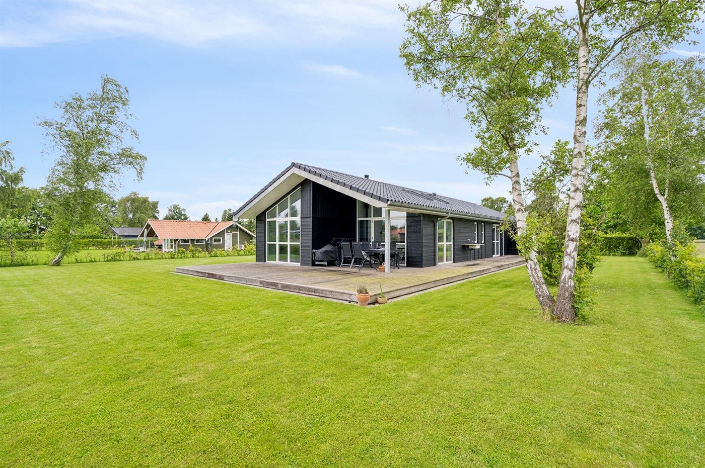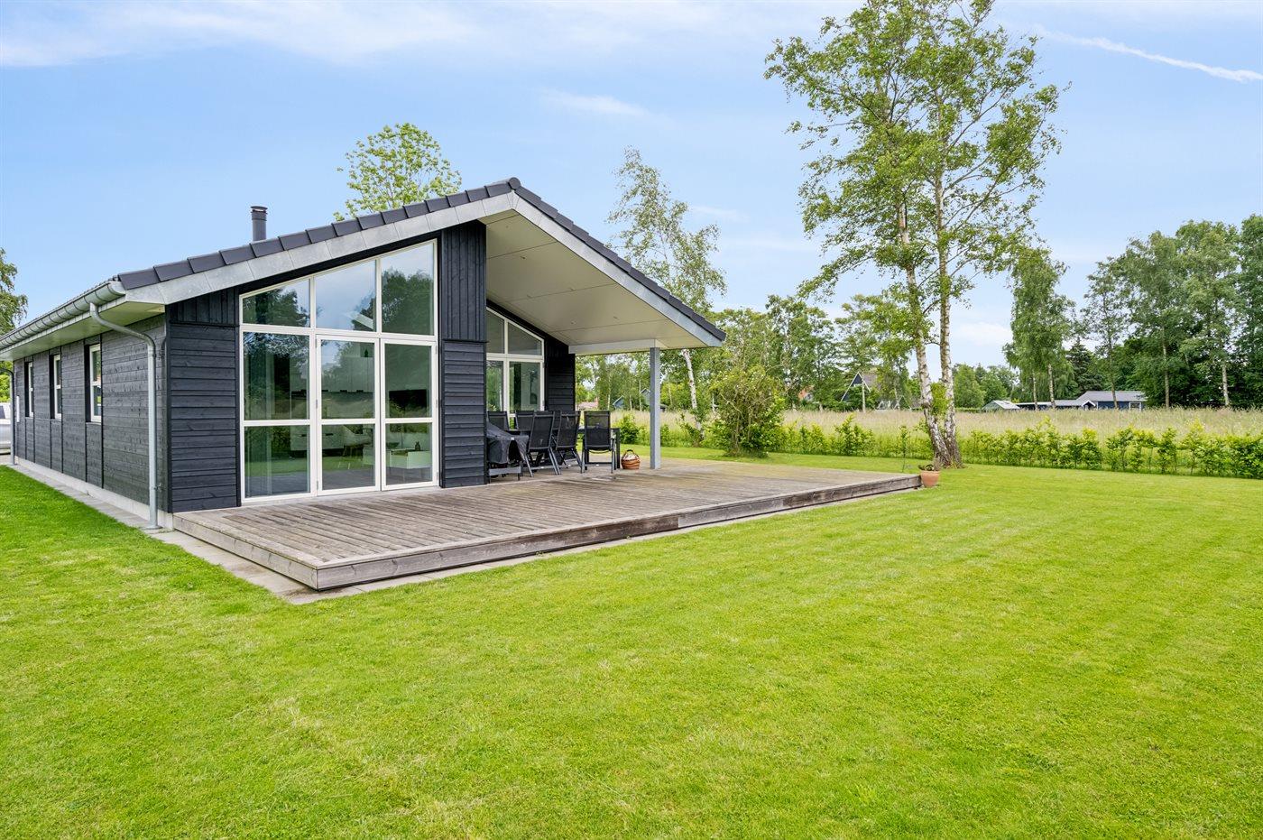 Moderne sommerhus i Skovmose med spa, gulvvarme og kort afstand til børnevenlig strand.