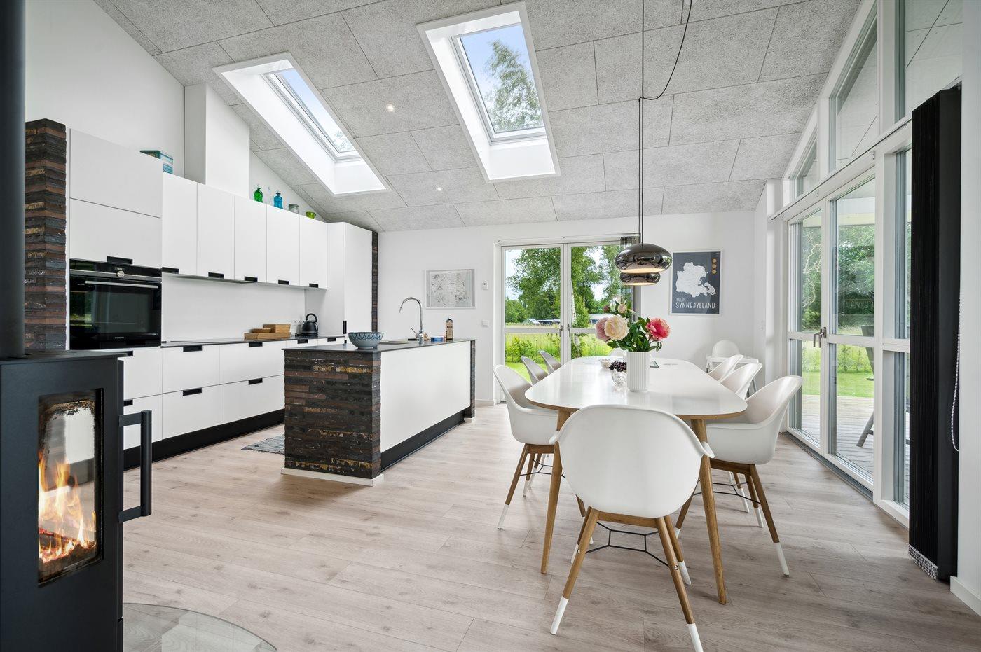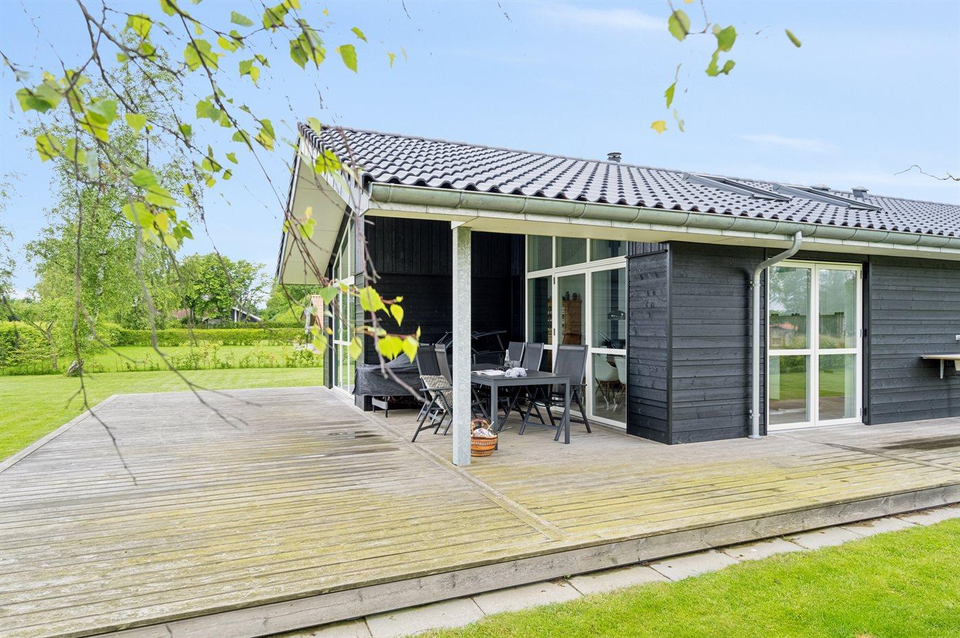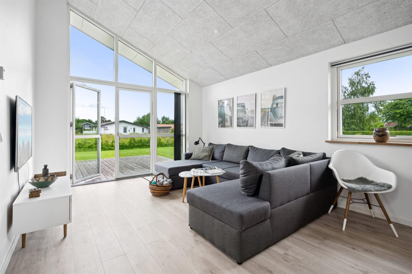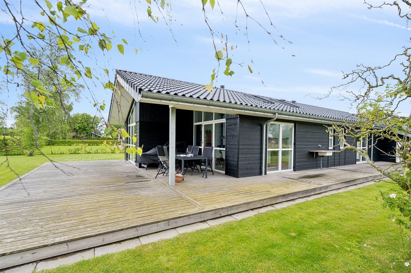 Moderne sommerhus i Skovmose med spa, gulvvarme og kort afstand til børnevenlig strand.
