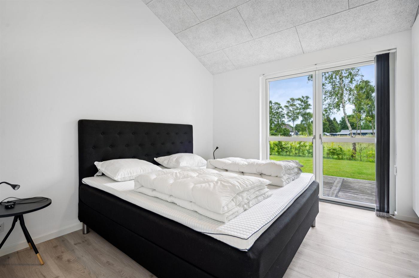 Der er i alt 4 soveværelser. Sovepladserne fordeler sig på: 6 sovepladser i dobbeltsenge. 2 sovepladser i sovesofa (dobbelt). 2 af disse sovepladser befinder sig i stuen. Derudover er der 1 stk. barneseng.