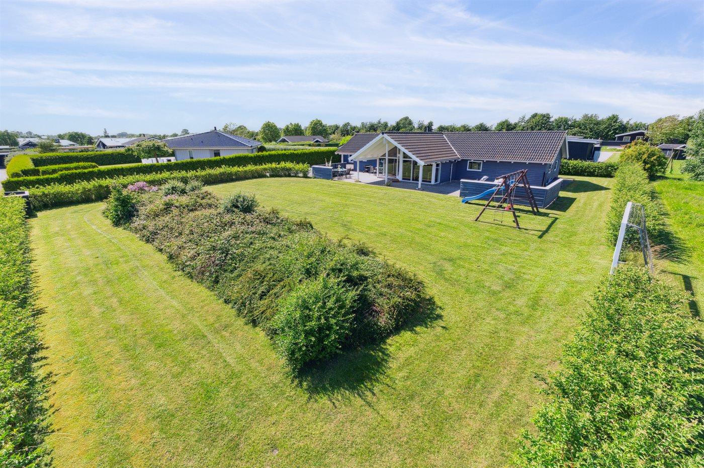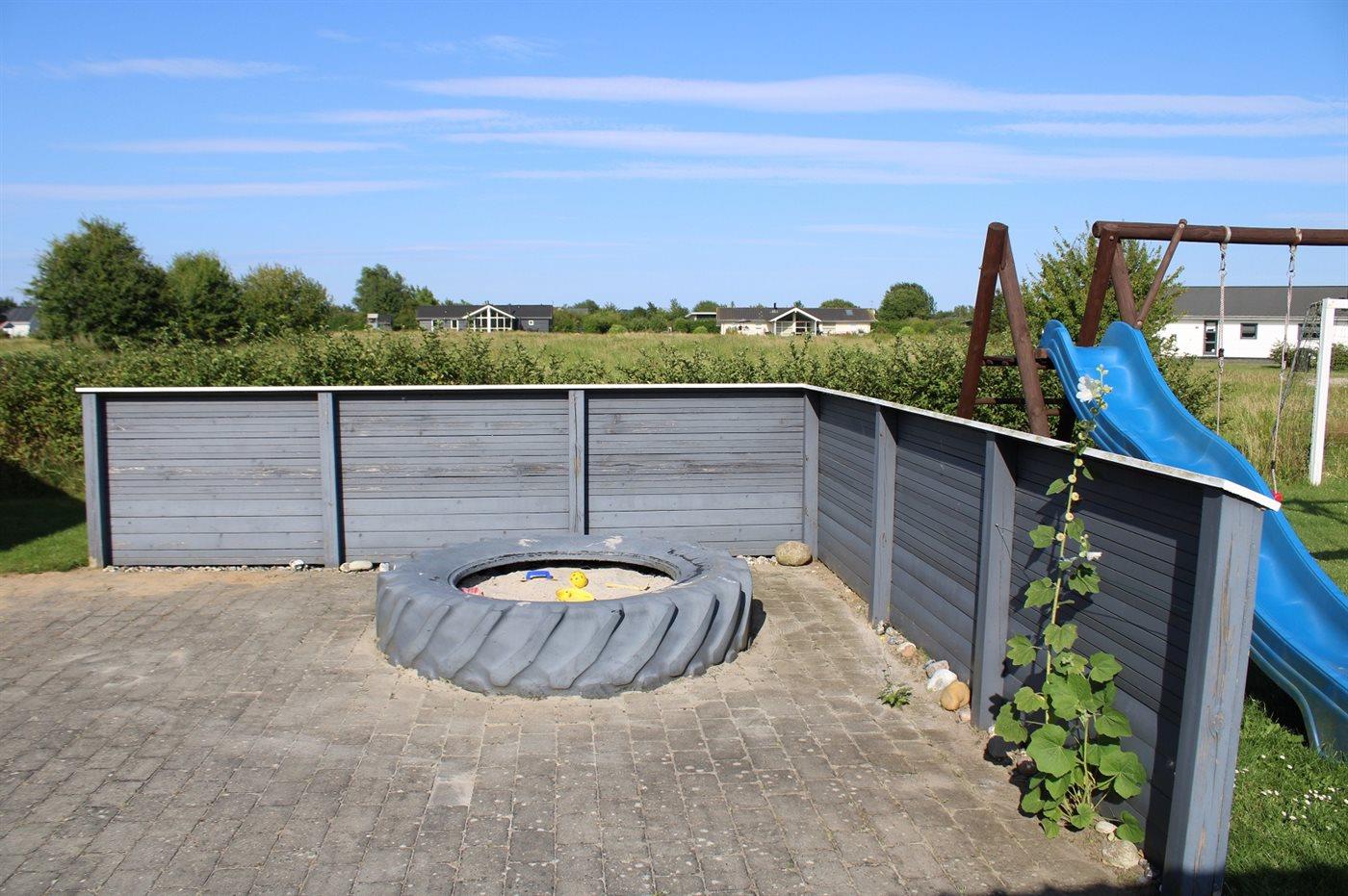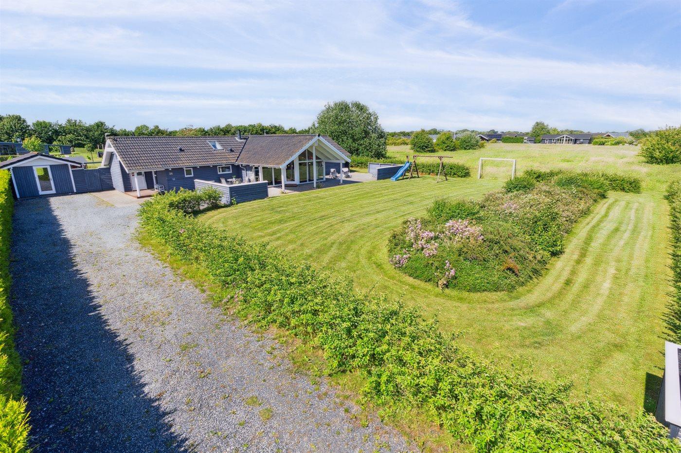 Ferieboligen er beliggende på en 1164 m² stor havegrund. Der er 800 m til havet. Nærmeste forretning er beliggende i en afstand af 2000 m. Der er en golfbane i en afstand af 12000 m. Til ferieboligen hører åbent terrasseareal. Desuden er der overdækket terrasse. Der er redskabsrum. Gynge. Sandkasse. Rutchebane. Fodboldmål. Der er en 10-hullers krolfbane i haven. Grill til rådighed. Udendørs vask. Parkering ved ferieboligen.