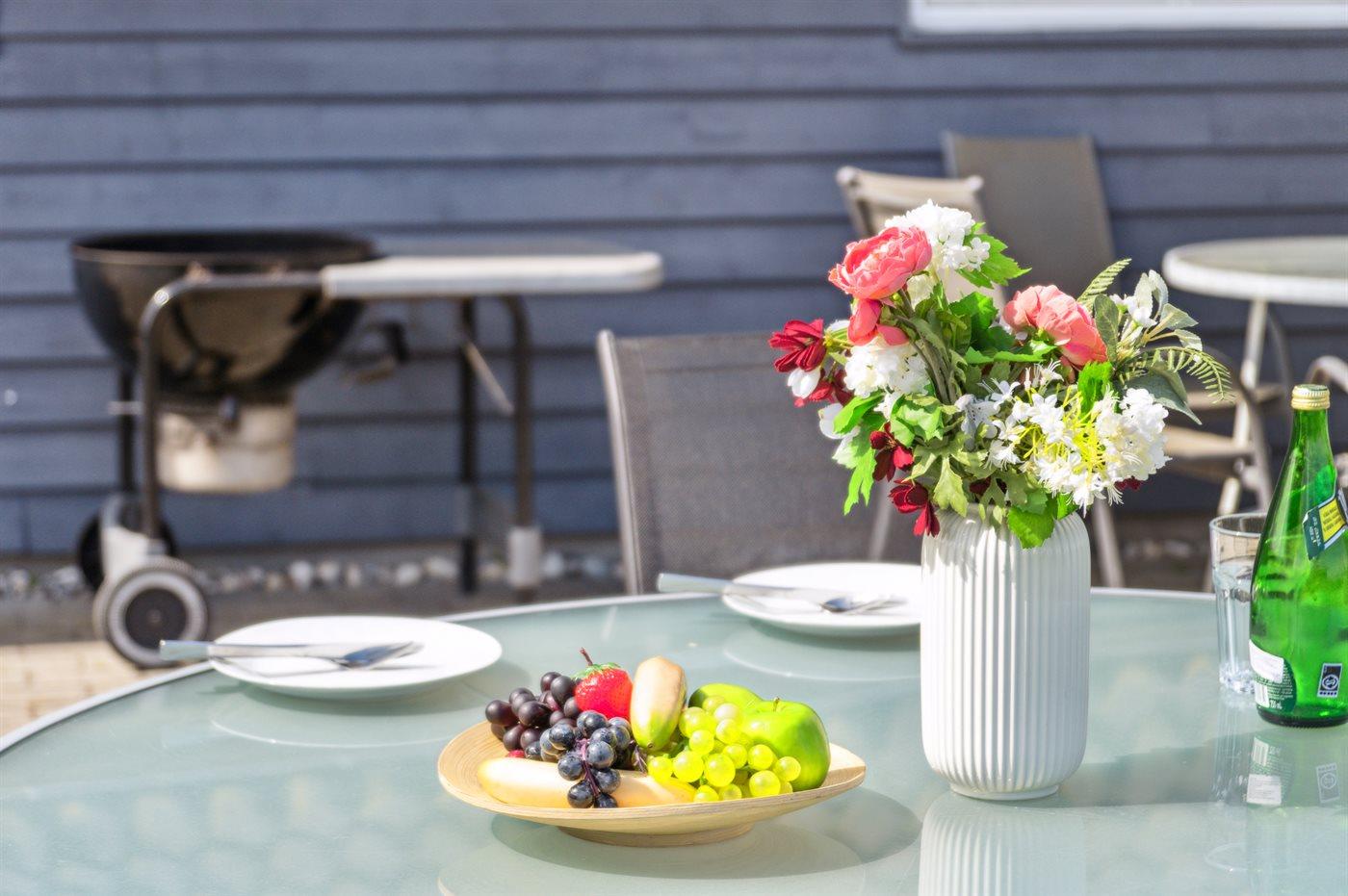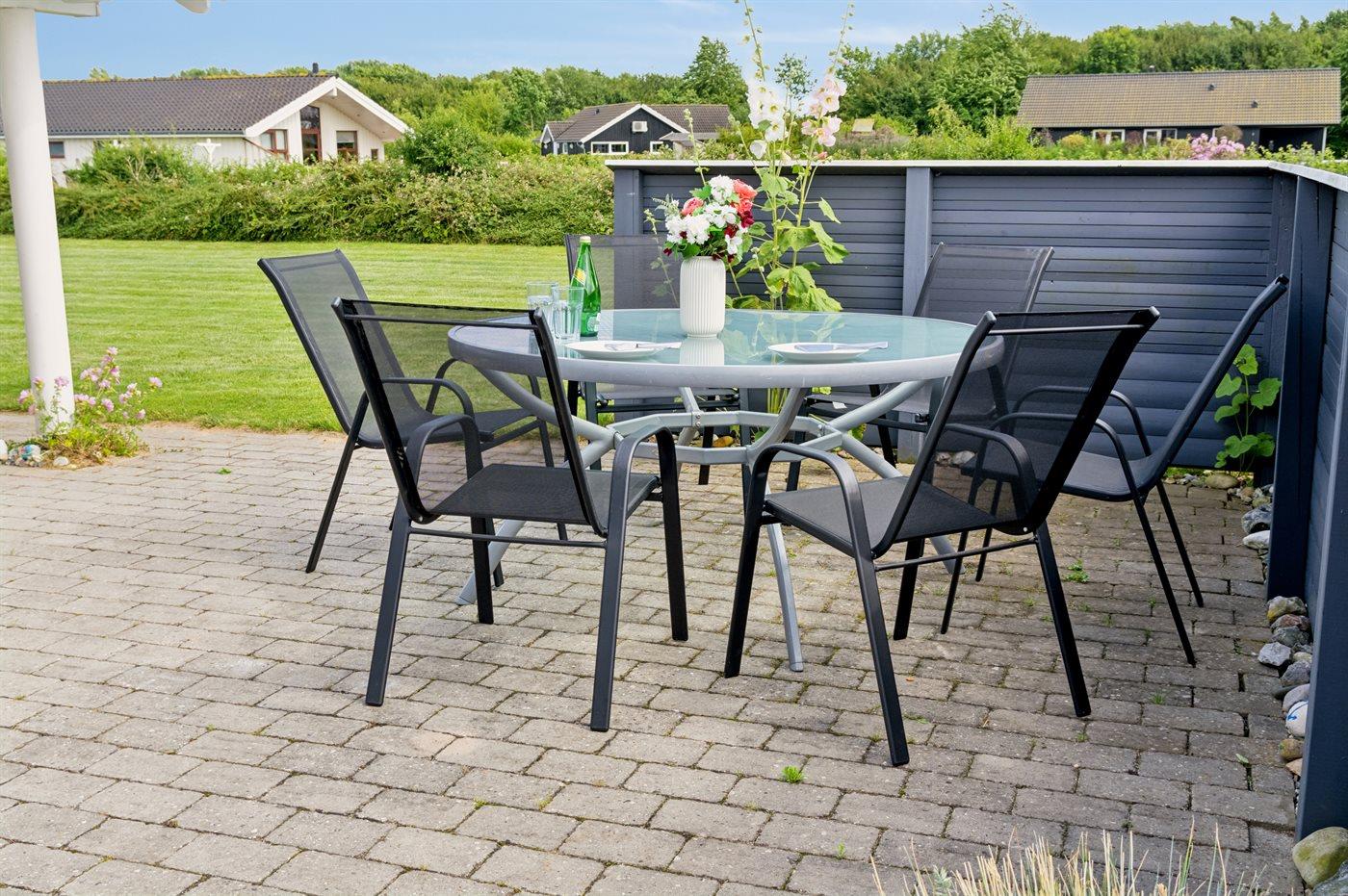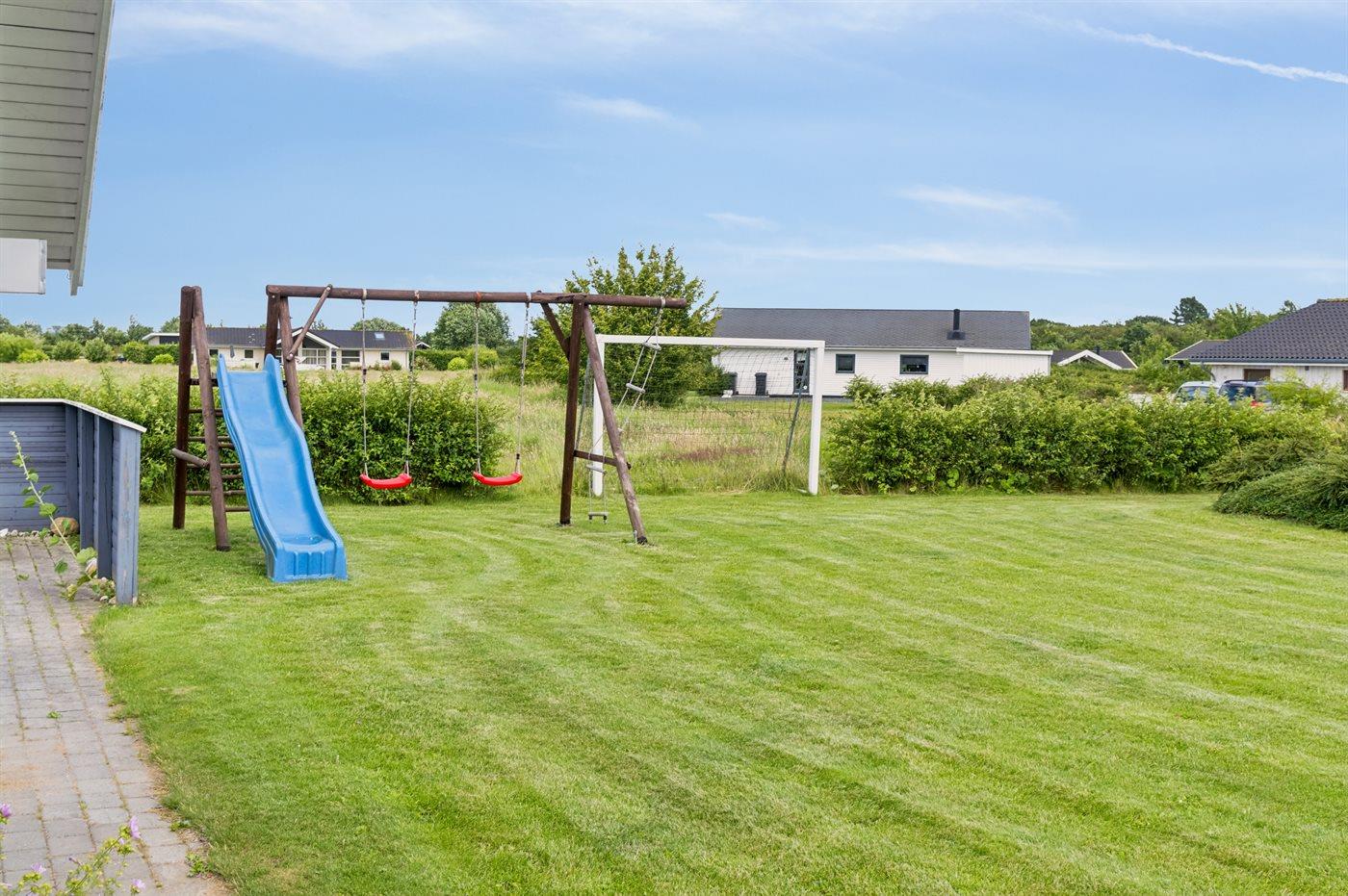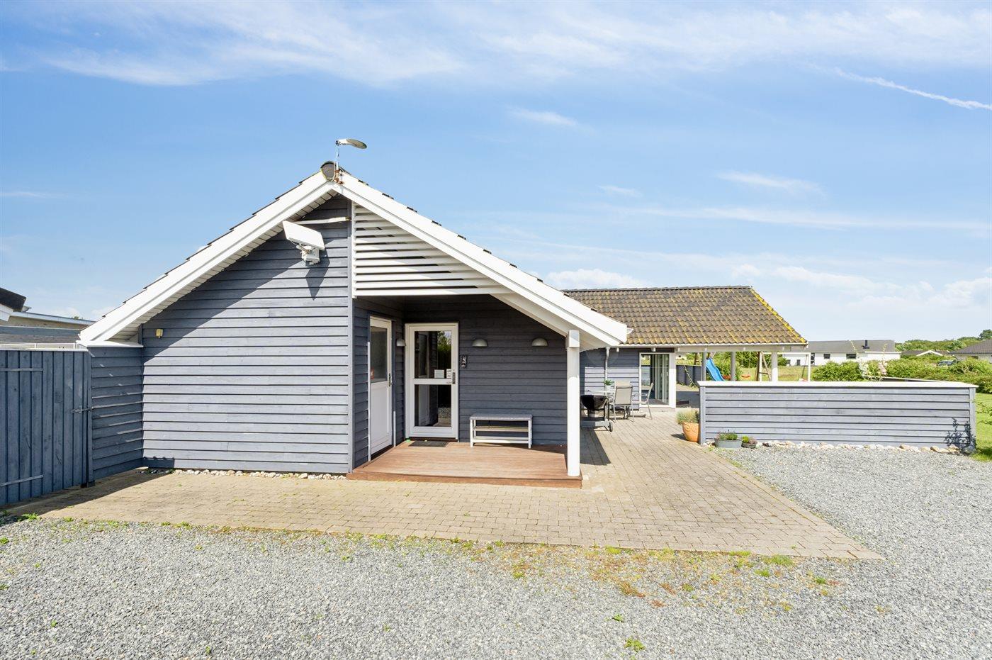 Ferieboligen er beliggende på en 1164 m² stor havegrund. Der er 800 m til havet. Nærmeste forretning er beliggende i en afstand af 2000 m. Der er en golfbane i en afstand af 12000 m. Til ferieboligen hører åbent terrasseareal. Desuden er der overdækket terrasse. Der er redskabsrum. Gynge. Sandkasse. Rutchebane. Fodboldmål. Der er en 10-hullers krolfbane i haven. Grill til rådighed. Udendørs vask. Parkering ved ferieboligen.