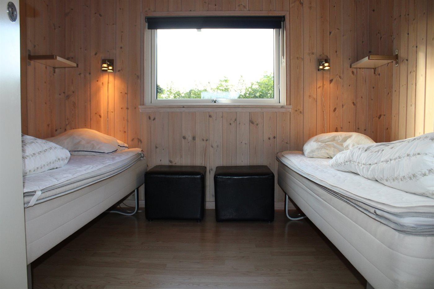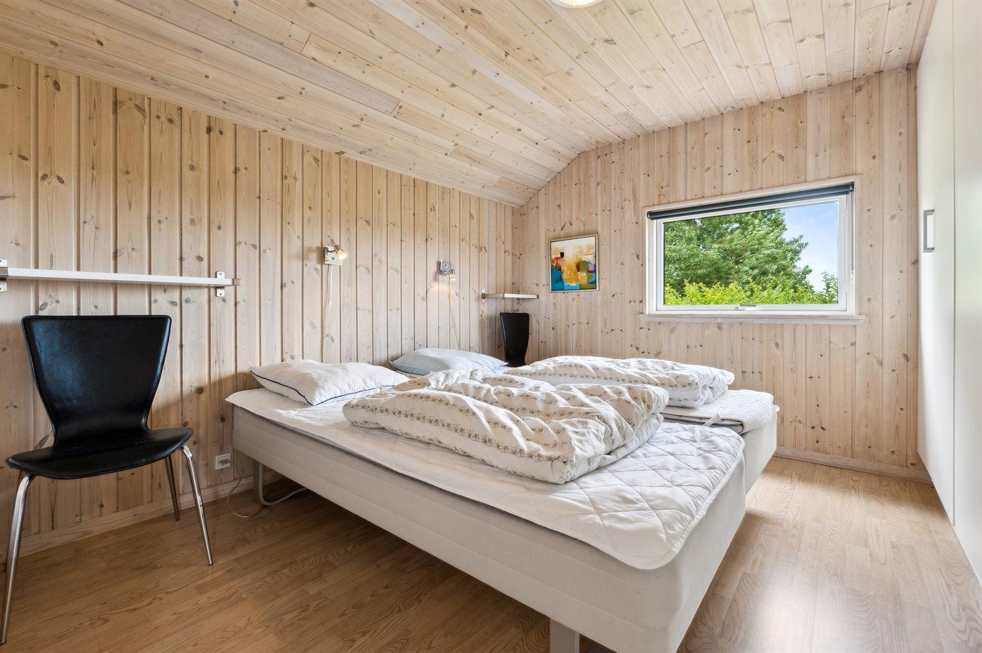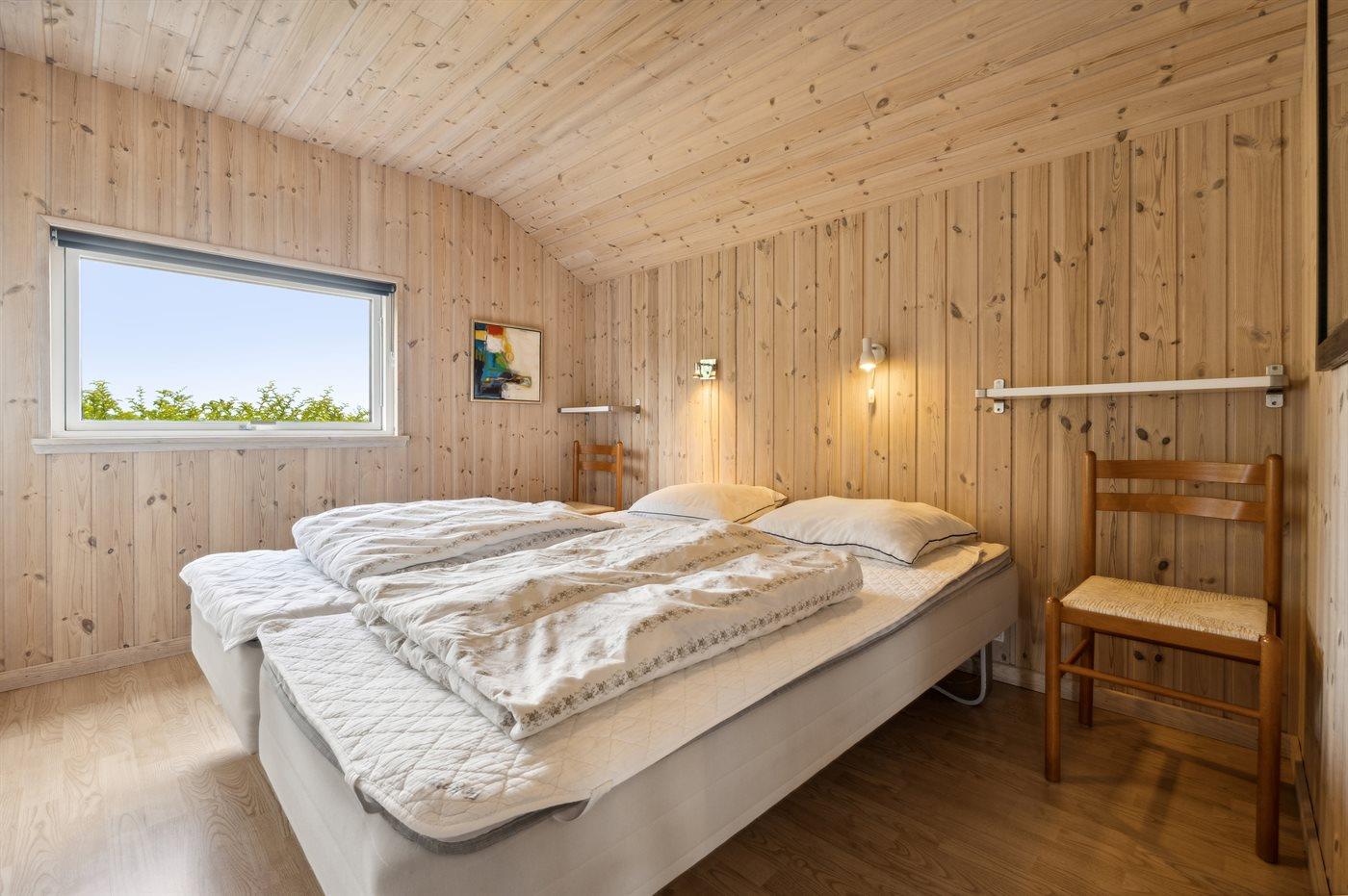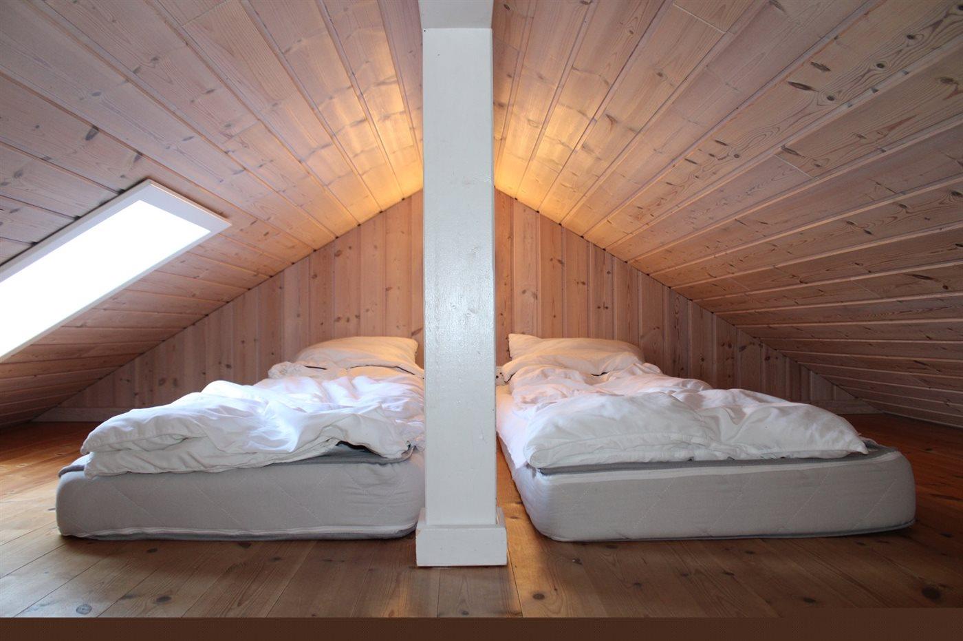 Der er i alt 4 soveværelser. Sovepladserne fordeler sig på: 4 sovepladser i dobbeltsenge. 4 sovepladser i enkeltsenge. 2 sovepladser på madrasser. 2 af disse sovepladser befinder sig på husets hems.