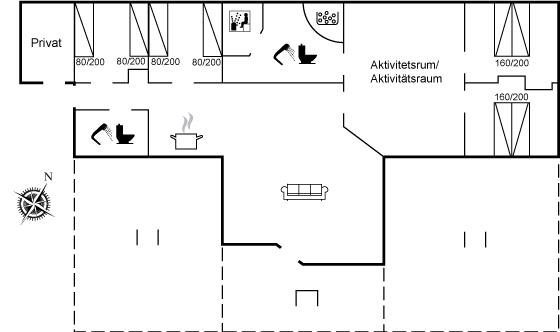 Dette dejlige og rummelige aktivitetshus ligger tæt ved børnevenlig sandstrand.