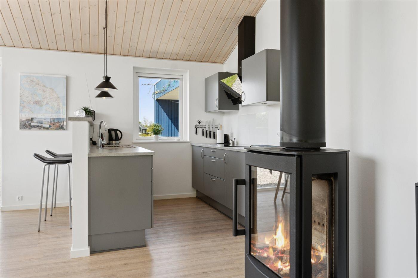 Køkkenet er udstyret med 1 køleskab. Der er 4 induktionskogeplader, varmluftovn, mikrobølgeovn samt opvaskemaskine.