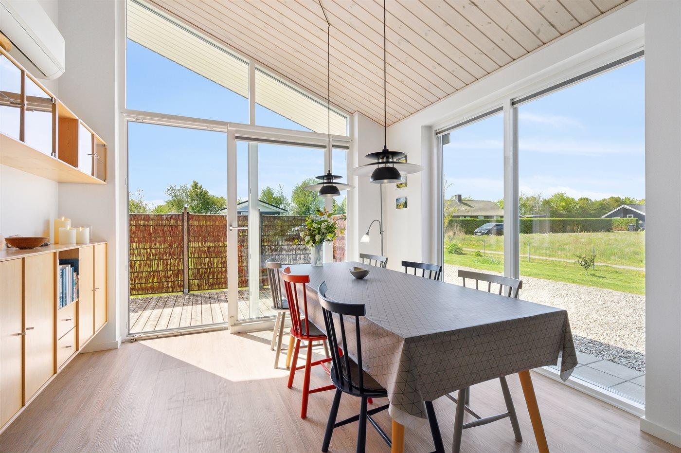 Du finder dette dejlige sommerhus i det rolige ferieområde Skovmose – ikke langt fra en børnevenlig sandstrand.
