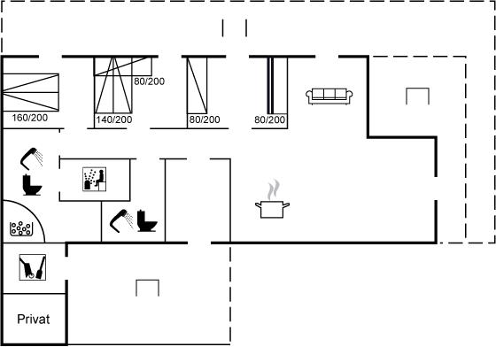 Der er i alt 3 soveværelser. Sovepladserne fordeler sig på: 2 sovepladser i dobbeltseng. 1 soveplads i enkeltseng. 4 sovepladser i køjesenge. Derudover er der 1 stk. barneseng.