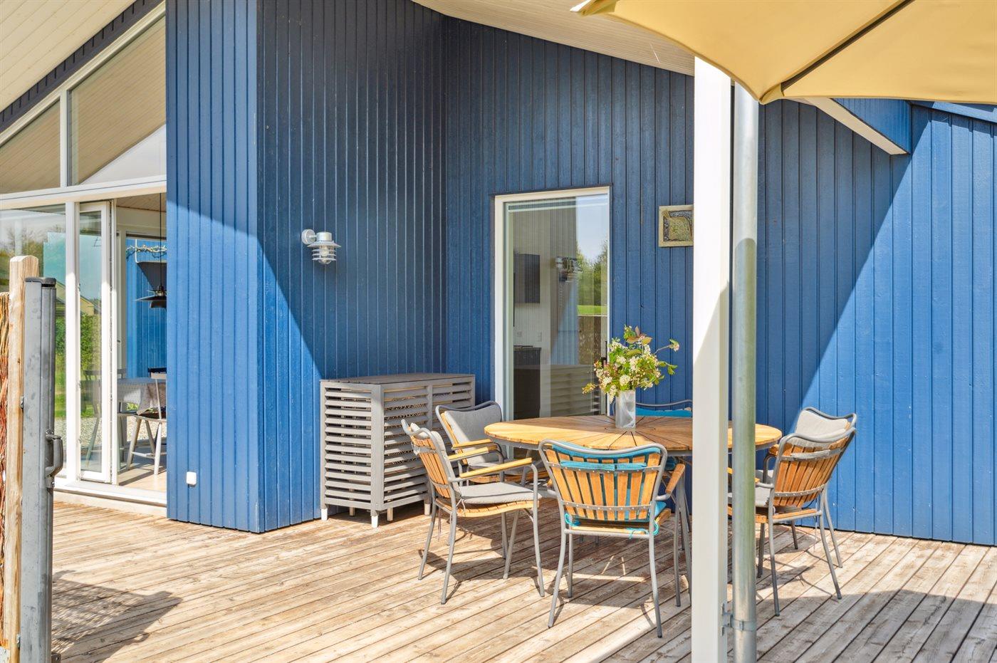 Ferieboligen er beliggende på en 1100 m² stor havegrund. Der er 700 m til havet. Nærmeste forretning er beliggende i en afstand af 1500 m. Der er en golfbane i en afstand af 16000 m. Til ferieboligen hører åbent og 23 m2 overdækket terrasseareal/indgang. Gynge. Sandkasse. Grill til rådighed. Der er installeret stik til opladning af elbil. Type 2 stik. Med 11 kW ladeeffekt. Parkering ved ferieboligen.