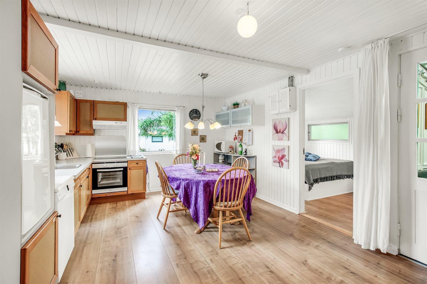 Hyggeligt, ældre sommerhus beliggende tæt på god badestrand.