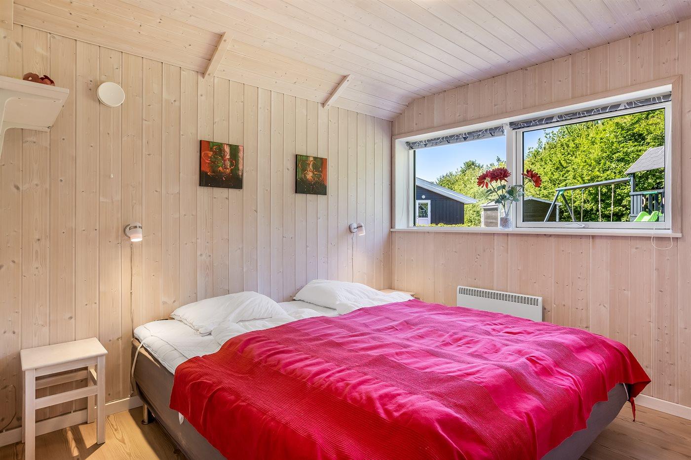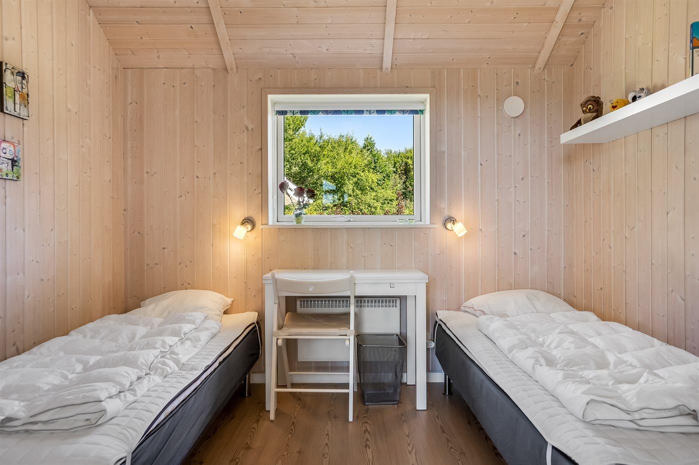 Der er i alt 3 soveværelser. Sovepladserne fordeler sig på: 4 sovepladser i dobbeltsenge. 2 sovepladser i enkeltsenge. 2 sovepladser i alkove. 2 af disse sovepladser befinder sig i stuen. Derudover er der 1 stk. barneseng.