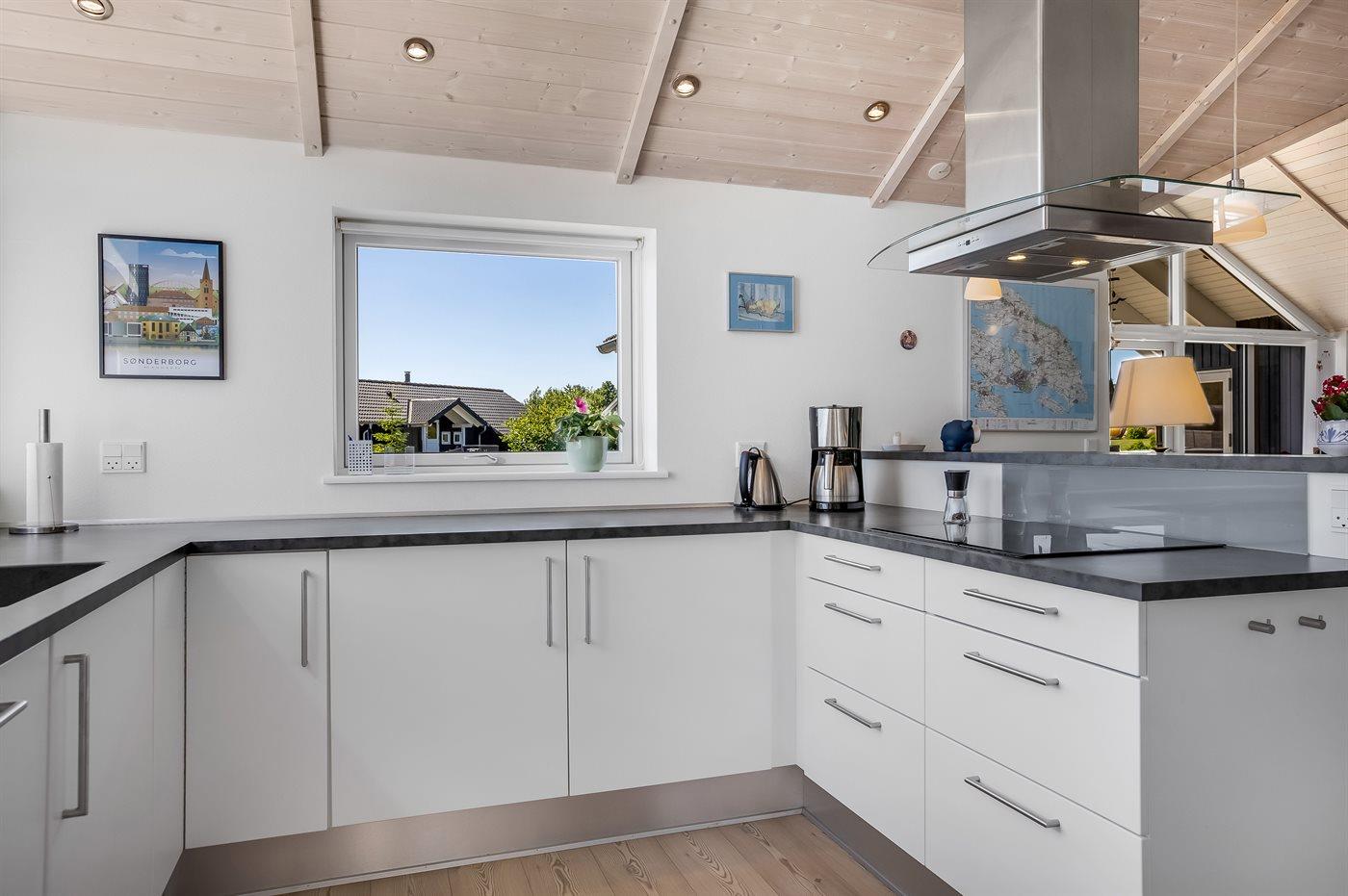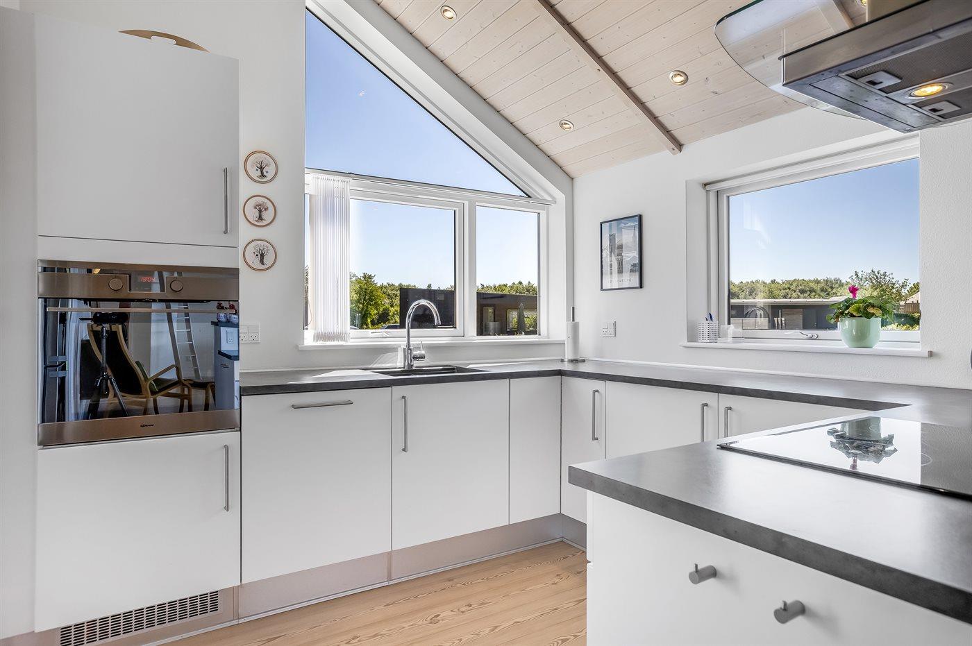 Køkkenet er udstyret med 1 køleskab. Der er 4 induktionskogeplader, varmluftovn, mikrobølgeovn samt opvaskemaskine.