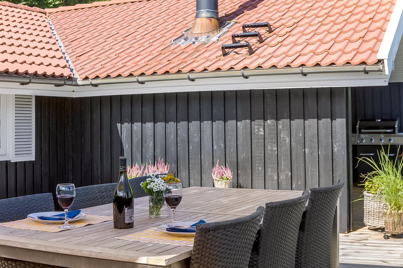 Ferieboligen er beliggende på en 1088 m² stor naturgrund. Der er 500 m til havet. Nærmeste forretning er beliggende i en afstand af 1800 m. Der er en golfbane i en afstand af 14000 m. Til ferieboligen hører åbent terrasseareal. Desuden er der overdækket terrasse. Grill til rådighed. Parkering ved ferieboligen.
