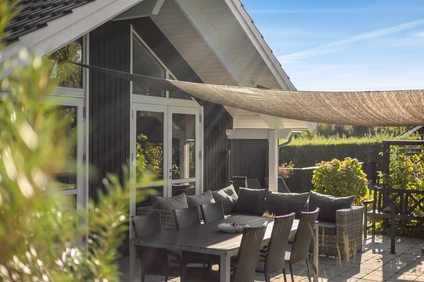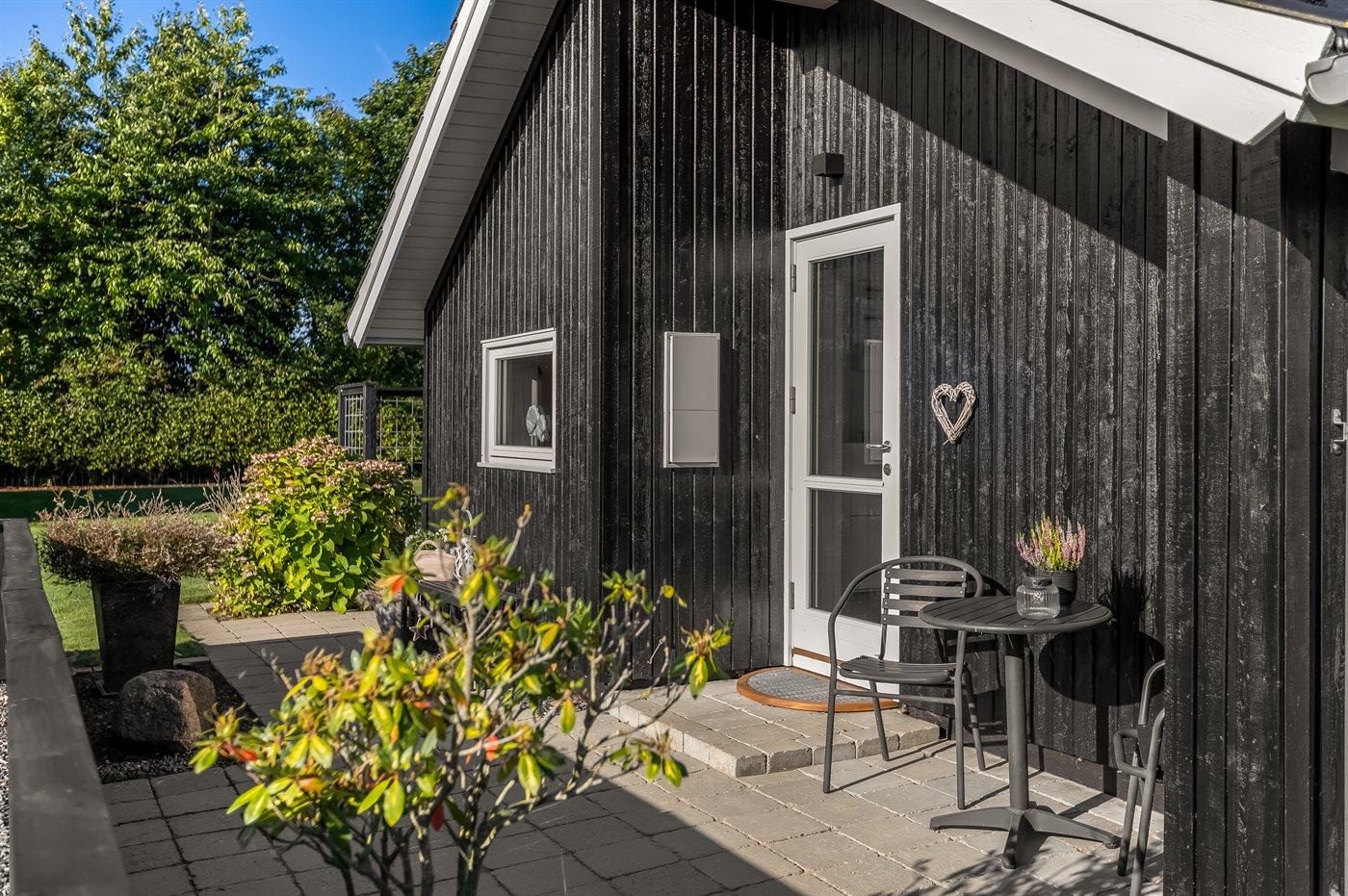 Ferieboligen er beliggende på en 1080 m² stor havegrund. Der er 700 m til havet. Nærmeste forretning er beliggende i en afstand af 1500 m. Der er en golfbane i en afstand af 12000 m. Til ferieboligen hører åbent terrasseareal. Desuden er der overdækket terrasse. Bålsted. Grill til rådighed. Parkering ved ferieboligen.