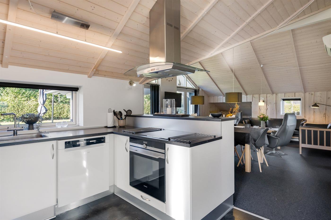 Køkkenet er udstyret med 1 køleskab. Der er 4 induktionskogeplader, varmluftovn, mikrobølgeovn samt opvaskemaskine.