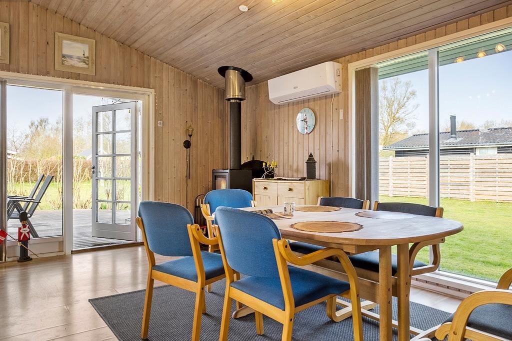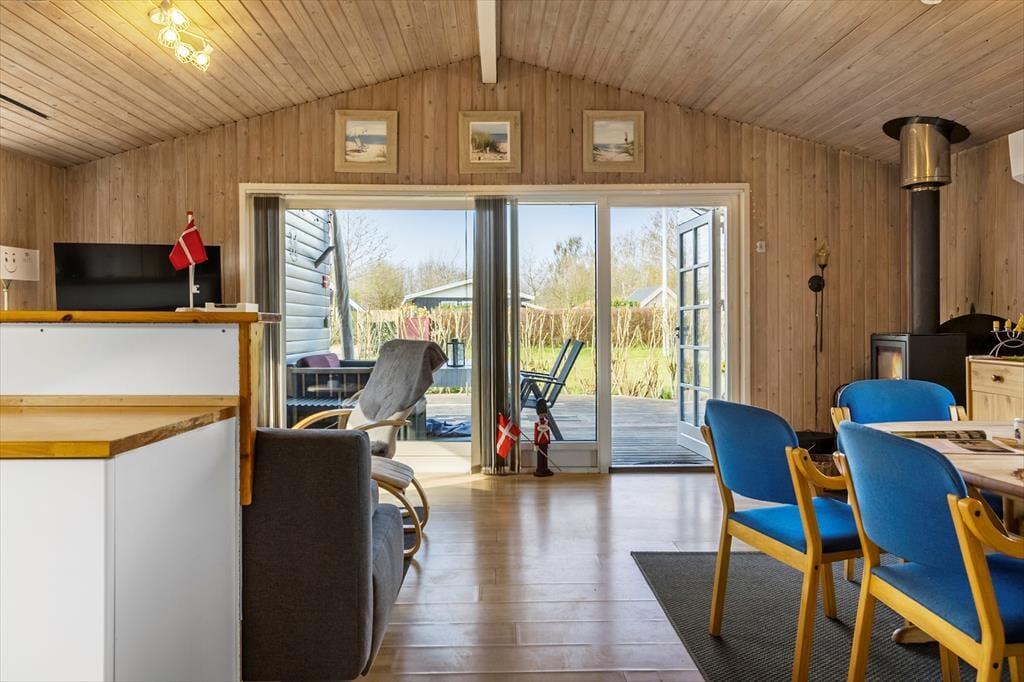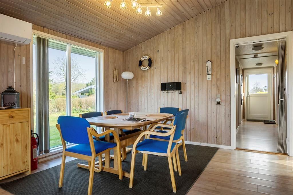Velindrettet sommerhus med 2 værelser med hver en dobbeltseng samt et værelse med køjesenge til børn (70x200 cm madrasser). Derudover er der et dejligt lyst køkken i åben forbindelse med stuen, hvor der er spiseplads, brændeovn, energibesparende varmepumpe og udgang til terrassen. Desuden er der et badeværelse, der er blevet renoveret i sommeren 2023.
